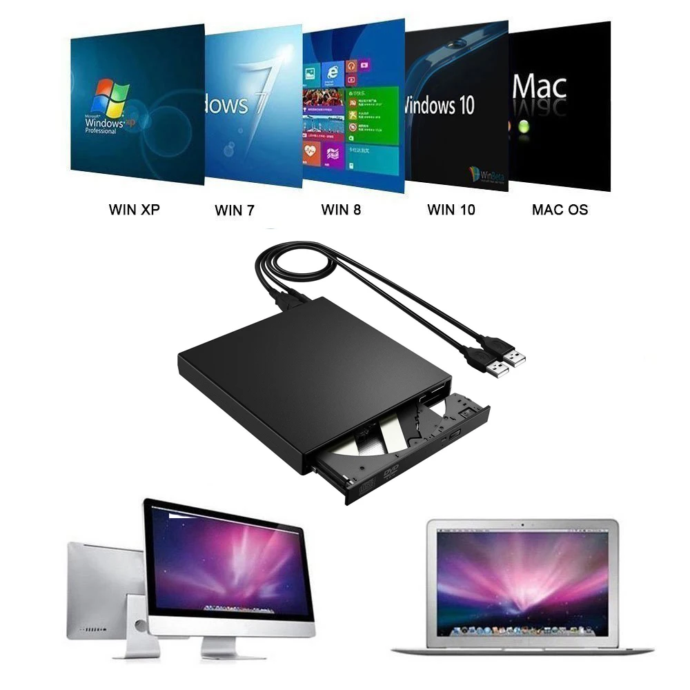 Внешний оптический привод DVD ROM USB 2,0 CDDVD-ROM, устройство записи тонкого портативного рекордера для ноутбука