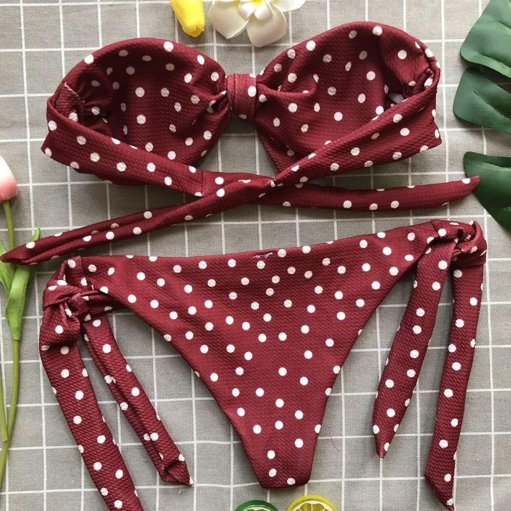 Сексуальное бикини с разрезом и выдвижным принтом в горошек для женских купальников, Новое поступление, Cikini S-L, летняя пляжная одежда, бикини