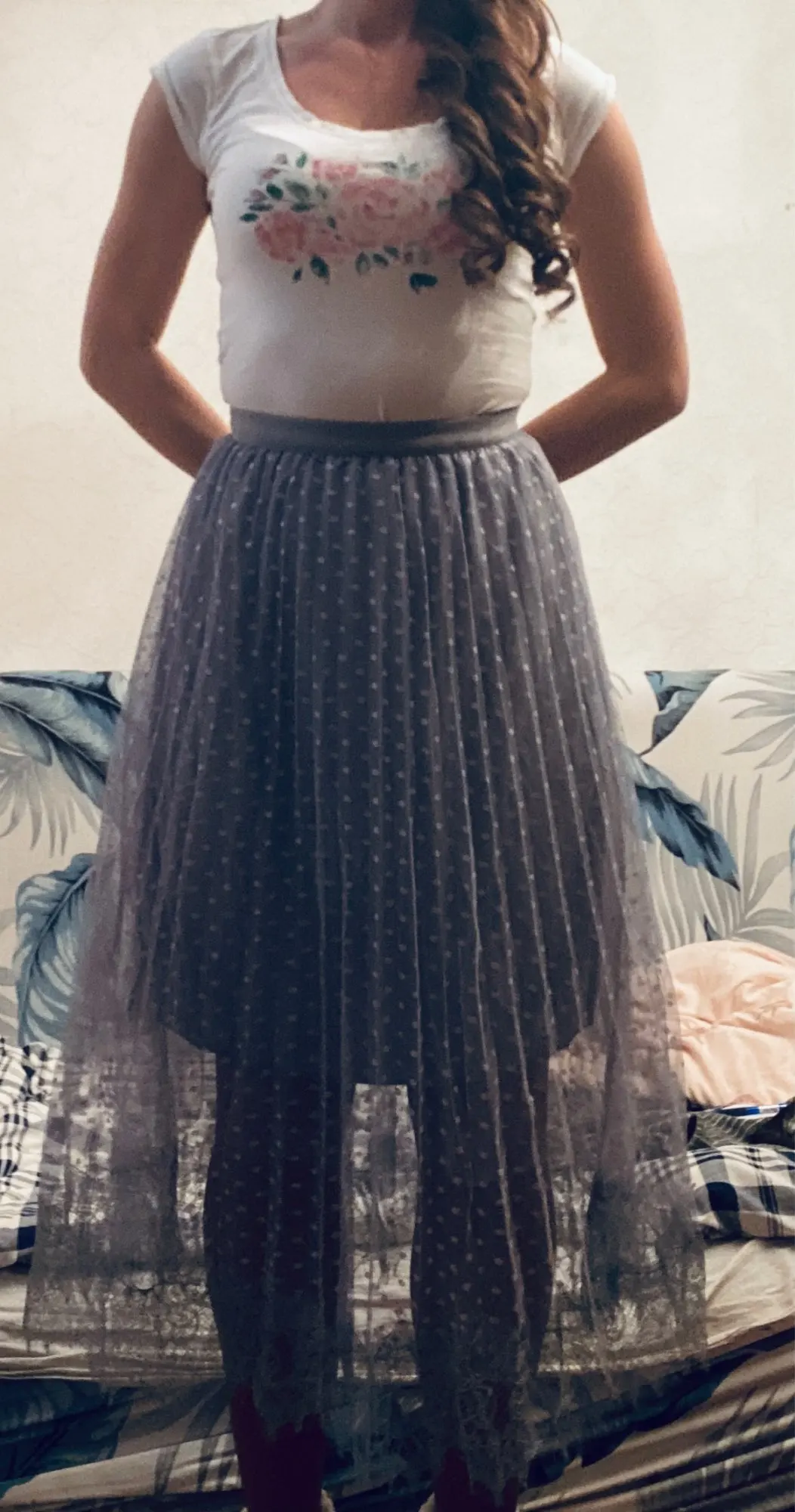 Женская кружевная фатиновая юбка в горошек, длинная повседневная юбка составного кроя в Корейском стиле, с завышенной талией, лето 2019