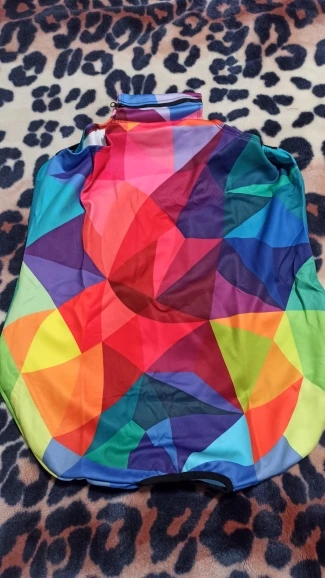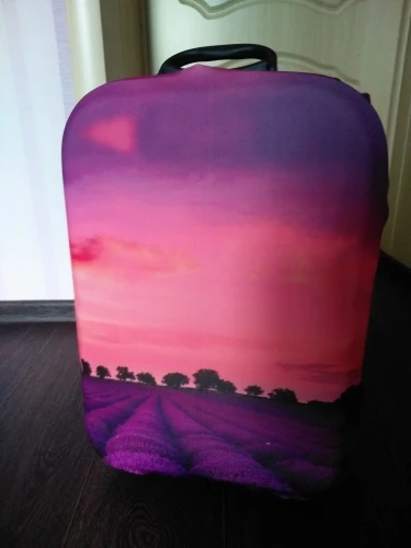 Чехол соответствует описанию, яркий, красивый, подходит на средний чемодан, но тонковат, не знаю, как выдержит поездки