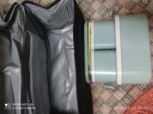 Удобно для работы. Продукты отдельно.В случае неплотной крышки не повредят остальное.Да и температуру летом будет держать. Внутренние карманы небольшие , под современные телефоны не пойдёт-только небольшие (3,5-5 дюймов). Удобно что верх тоже на молнии.