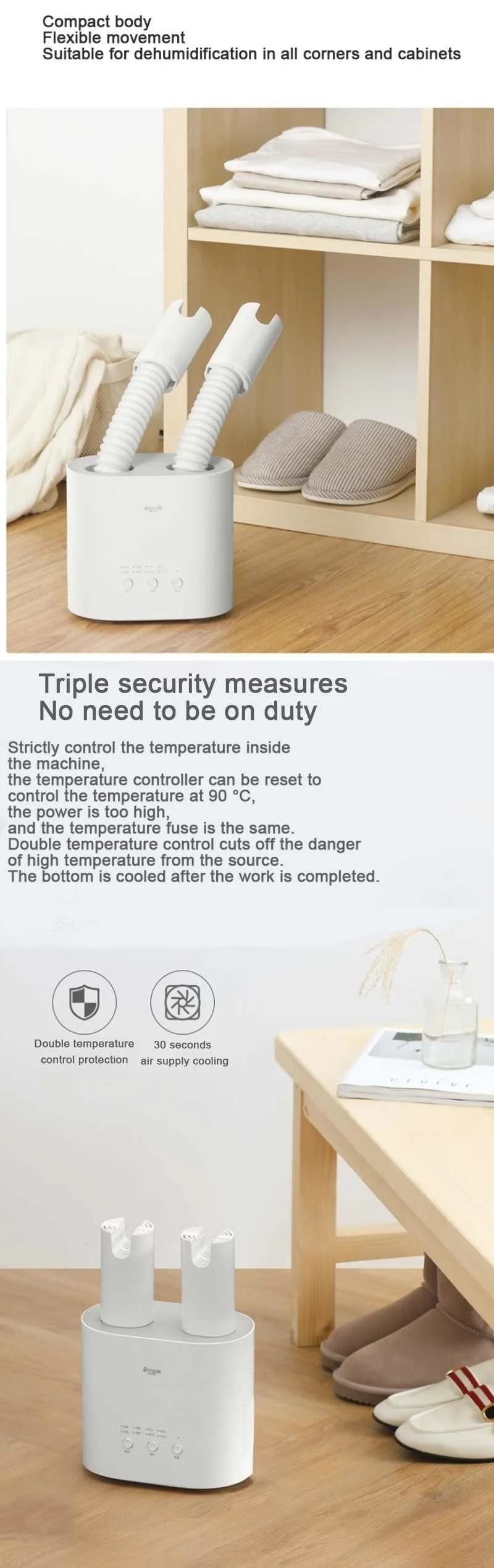 Поддержка постоянной температурыКерамический генератор озонаВстроенный генератор озона производит его в достаточном количестве, чтобы он мог окислиться и разложить сам фактор запаха и уменьшить рост грибка.Интеллектуальный контроль температурыГрибок растет в теплых и влажных условиях, что приводит к выделению, вызывающему запах ног. Сушка для обуви разрушит самую среду обитания грибка, активируя антибактериальный эффект, удаляя сырость и оставляя обувь сухой и мягкой.Длинный шлангШланги для подачи воздуха изготовлены из гофрированного материала и могут растягиваться до 27 см, благодаря этому вы можете сушить обувь разной высоты.