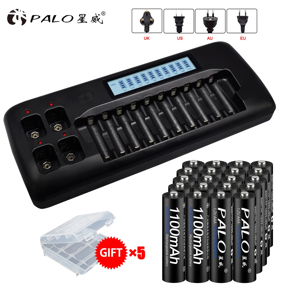 Зарядное устройство, ЖК-дисплей, умное зарядное устройство для батарей AA, AAA, Ni-MH, Ni-Cd, 1,2 В3,7 В9 в, 14 батарей, 14 батарей, 14 батарей AAA