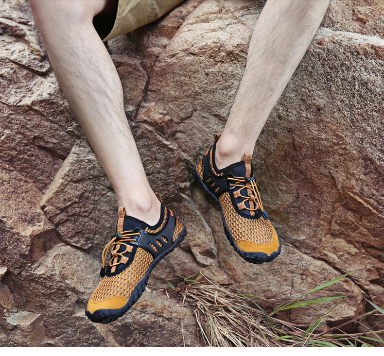 Летняя Повседневная пляжная обувь, модная мужская Водная обувь, уличная походная обувь дышащая сандалии, сетчатые кроссовки без шнуровки, размера плюс