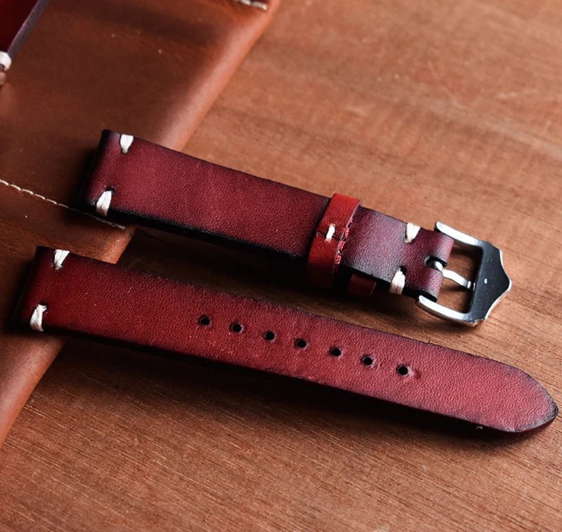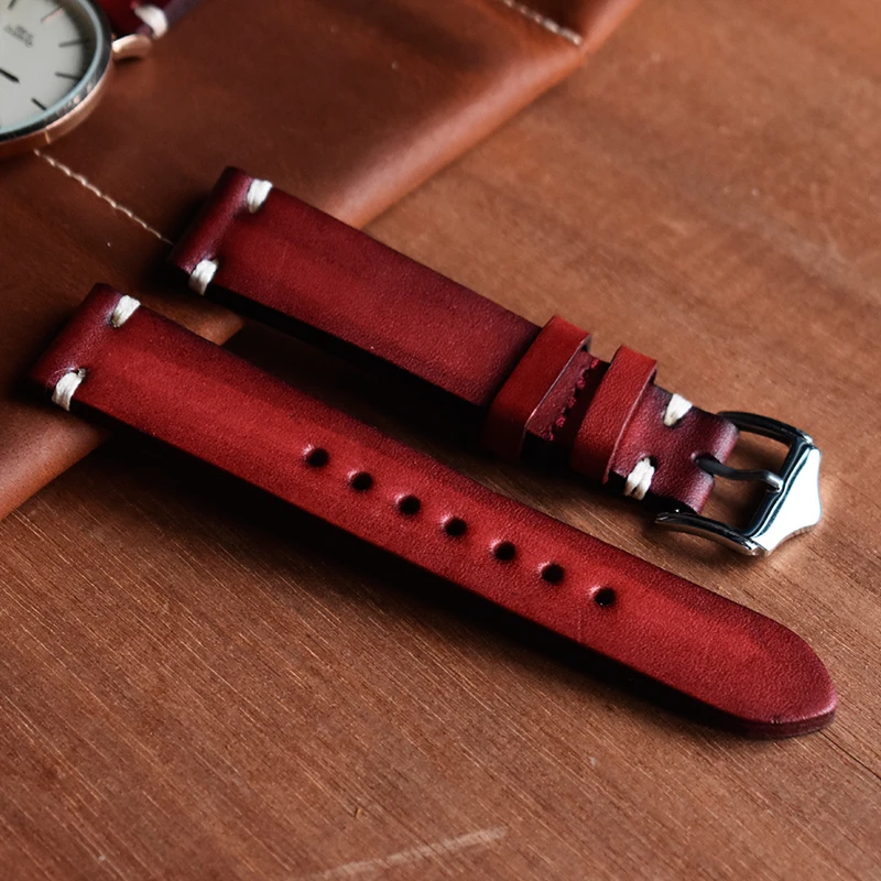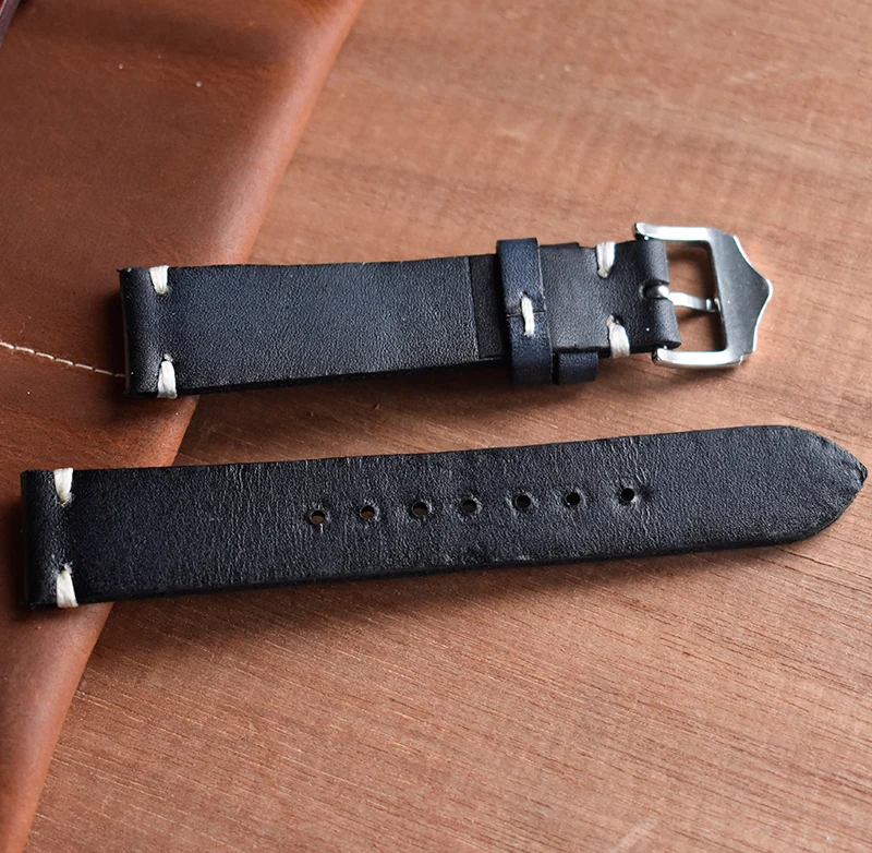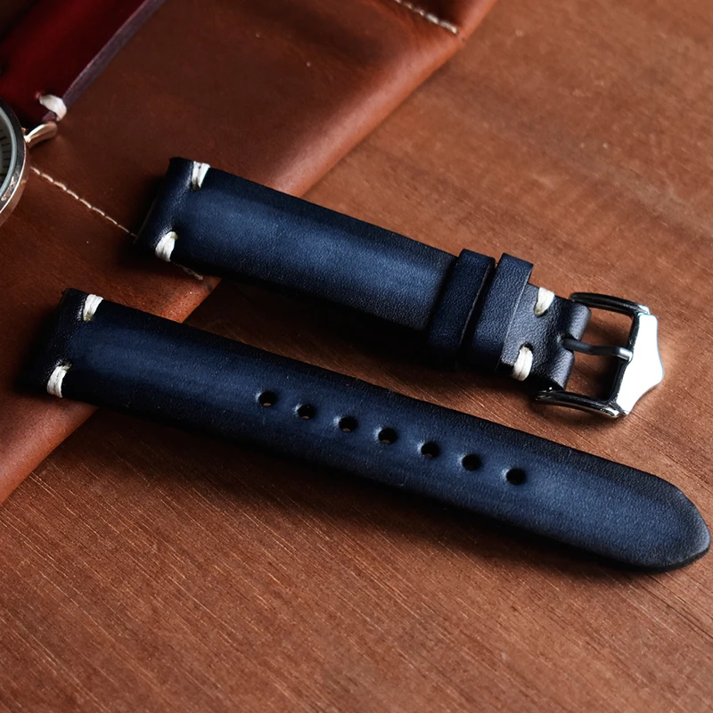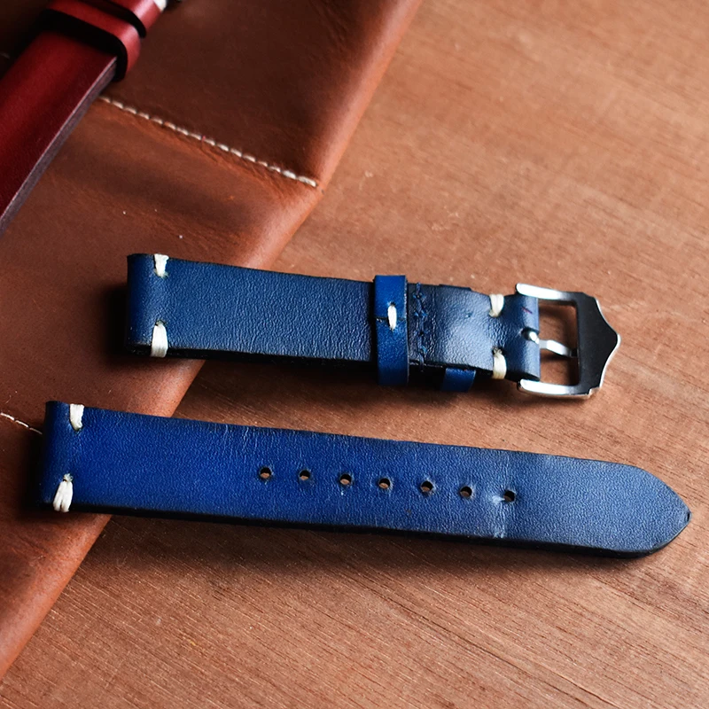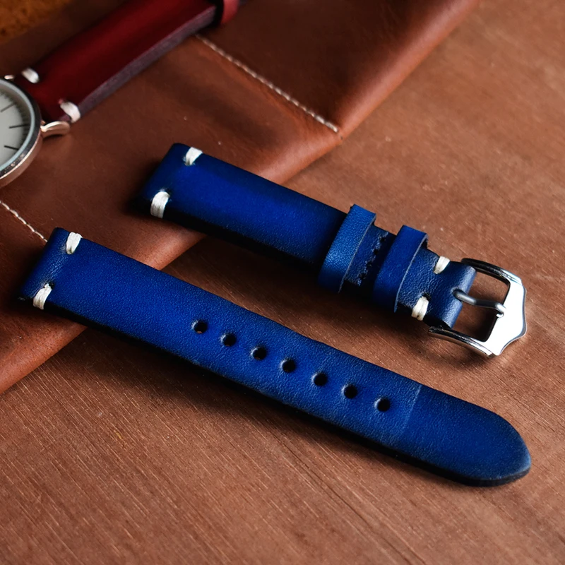 Ремешок из воловьей кожи, винтажный кожаный черный, синий, красный браслет, ремешок 20 мм, ремни из нержавеющей стали, пряжка, аксессуары KZTS03