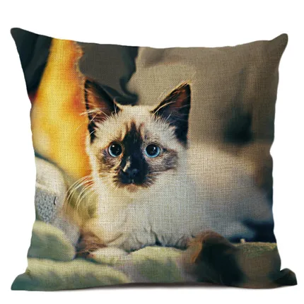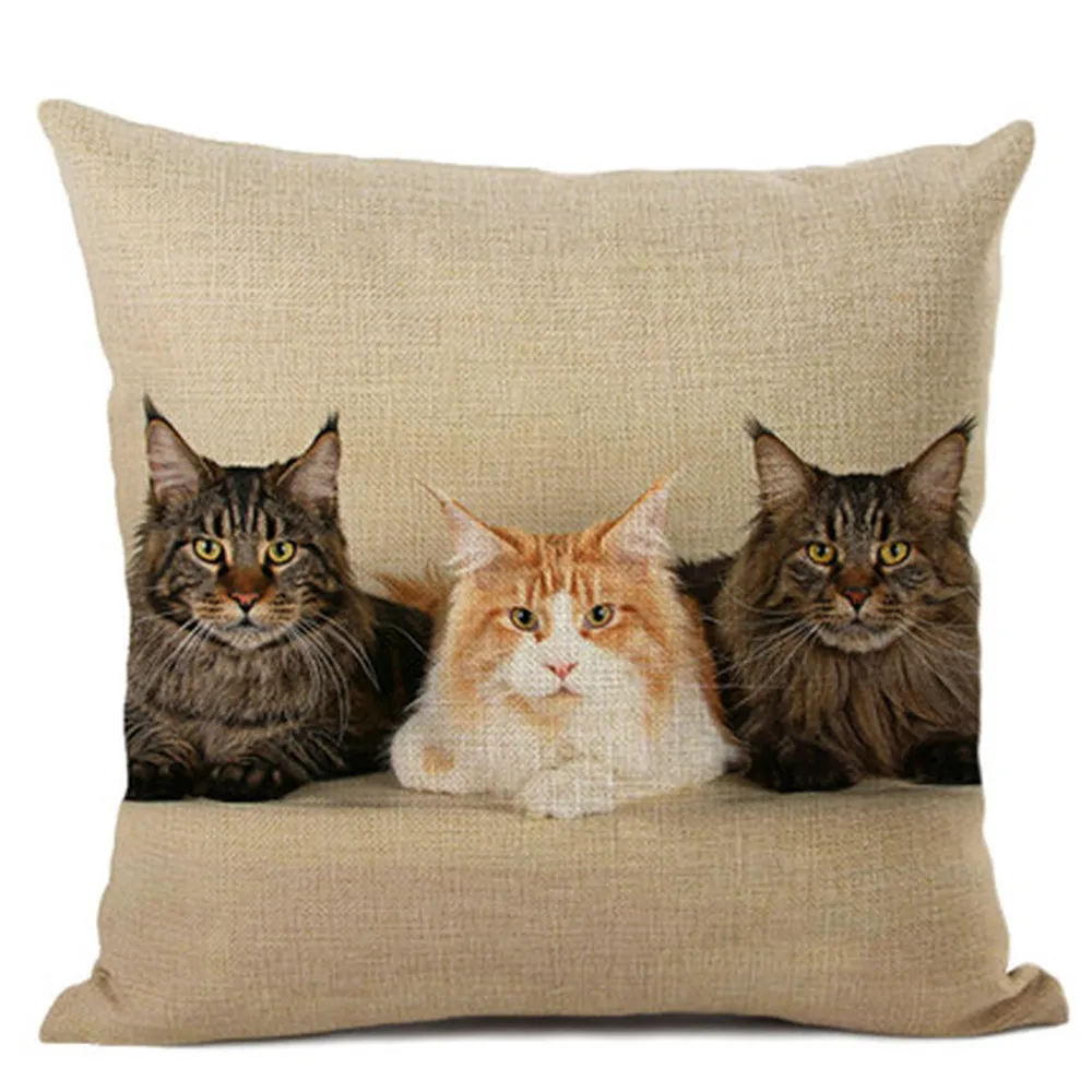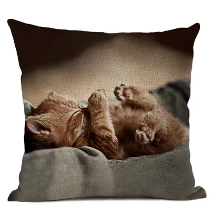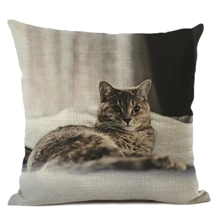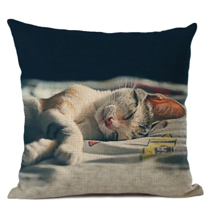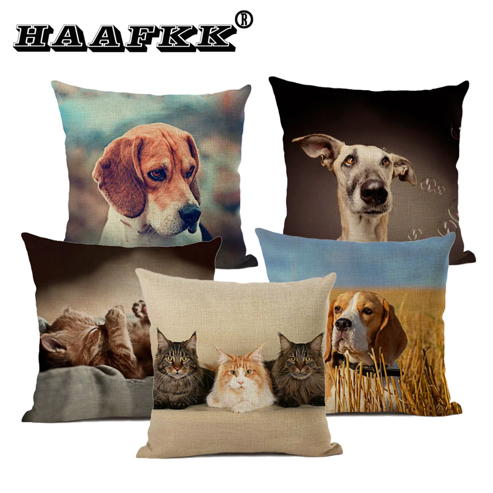 Наволочка с изображением животных, подушка с рисунком милой собаки и кошки 45x45 см, льняная подушка, украшение для гостиной, дивана, детская Подарочная подушка