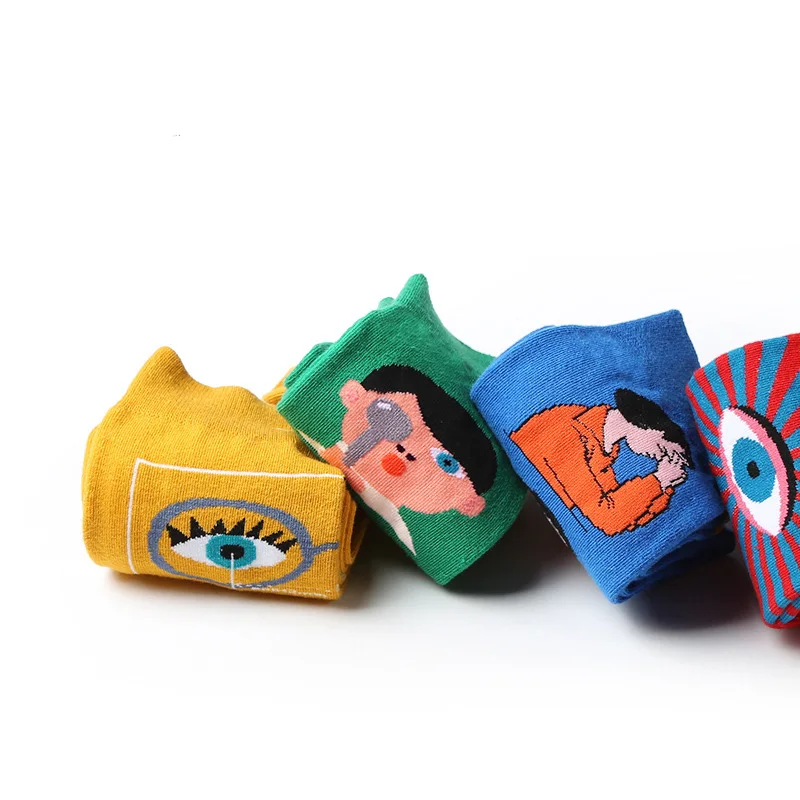 SP CITY смешные носки с красочными глазами из мультфильма Harajuku женские шикарные милые хлопковые короткие носки унисекс винтажные Милые Носки с рисунком