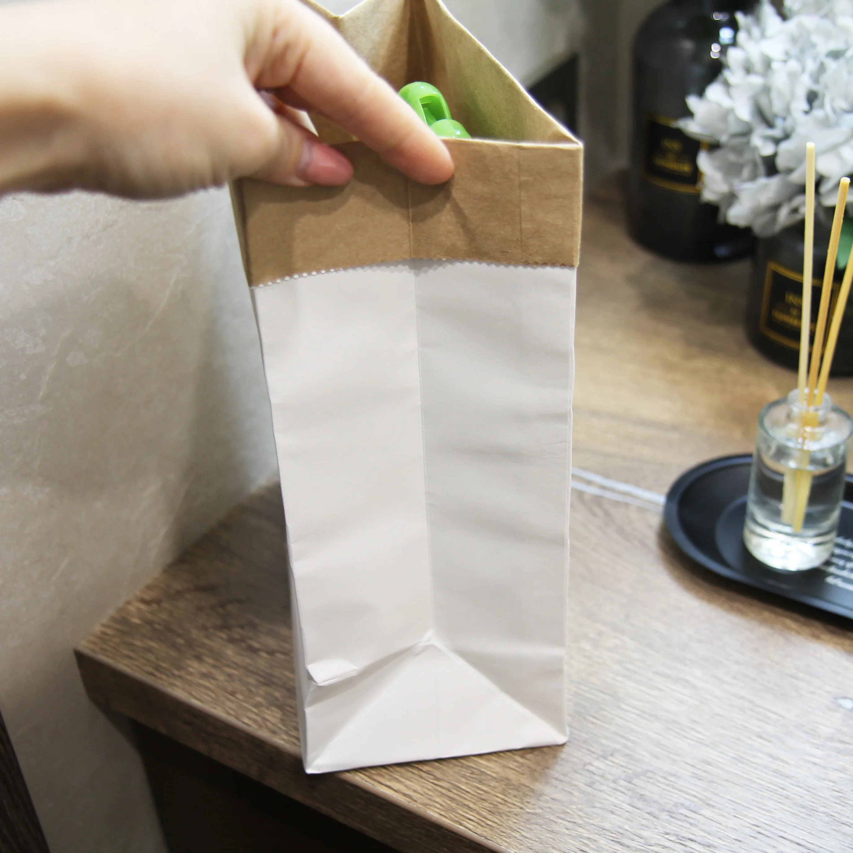 Я был удивлен хорошим качеством бумаги. Это две толстые бумажные сумки, одна белая и Одна коричневая.