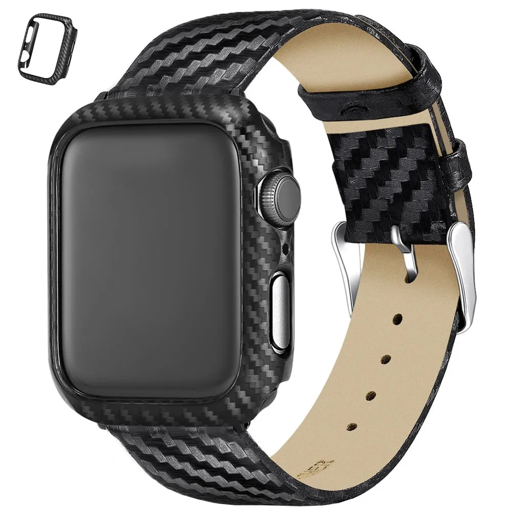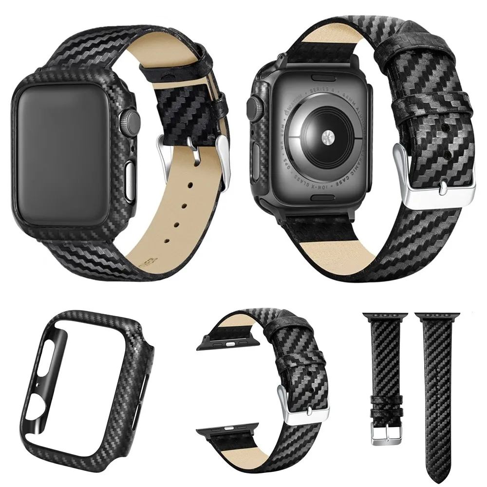 Ремешок из углеродного волокна для iWatch 4 40 мм 44 мм, спортивный сменный Браслет для Apple Watch Series 7 + чехол для часов
