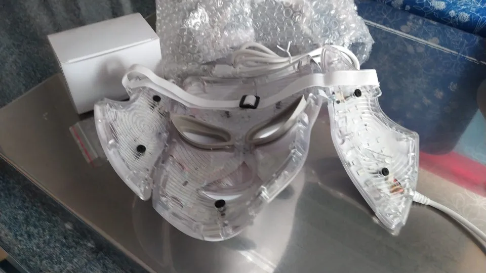Посылка получена в Подмосковье через 5 дней с момента оформления заказа. При передаче моих данных в бесплатную службу доставки произошел сбой и номер телефона отразился неверно. Сначала пришло письмо о том, что невозможно связаться с покупателем и потому доставить заказ. В результате курьер без предварительного звонка привез посылку по указанному адресу. Спасибо курьерской службе за настойчивость! Маска была упакована в дутый очень прочный полиэтиленовый пакет. Отдельные части внутри лежали в пакетах с пупырками. Всё целое, без повреждений, все режимы работают. У меня уже есть подобная маска, но без насадки для шеи. Пользуюсь ею примерно полгода. Результатом довольна: выровнялся, улучшился цвет лица, стали пропадать мелкие морщинки. Кожа стала менее сухая. Пользуюсь в основном красным светом. Пожалела, что шея не охвачена, заказала эту маску. Товаром довольна. Получила то, что хотела. Спасибо продавцу и процветания его бизнесу.