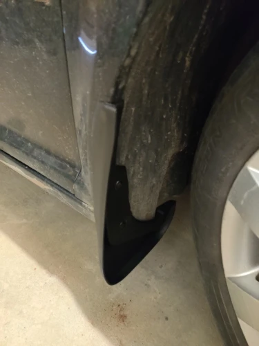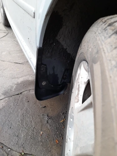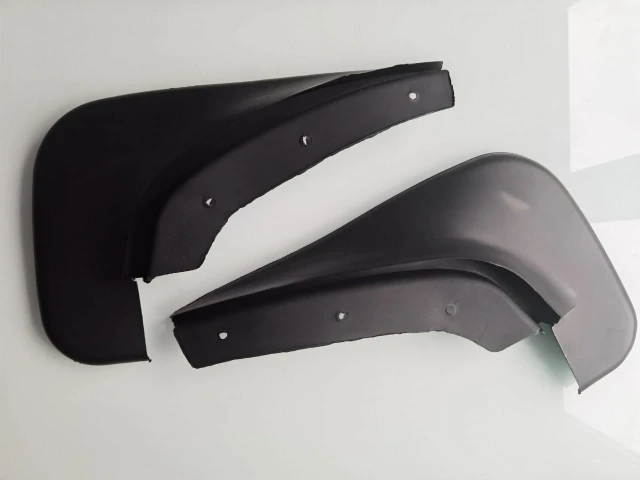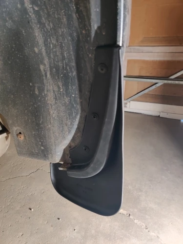 хорошие брызговики, три из четырех встали в родные отверстия, четвертый пришлось сверлить, и брать саморез побольше. проверку бордюром прошли, почти каждый день паркуюсь до хруста заднего брызговика, не жёсткий поэтому не ломается