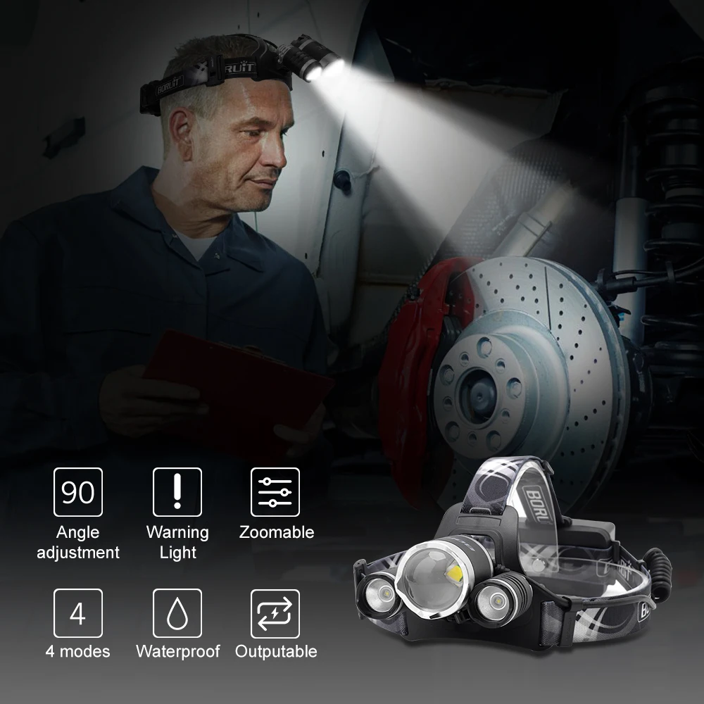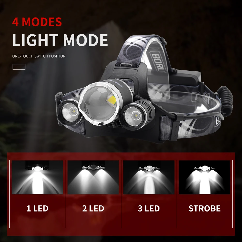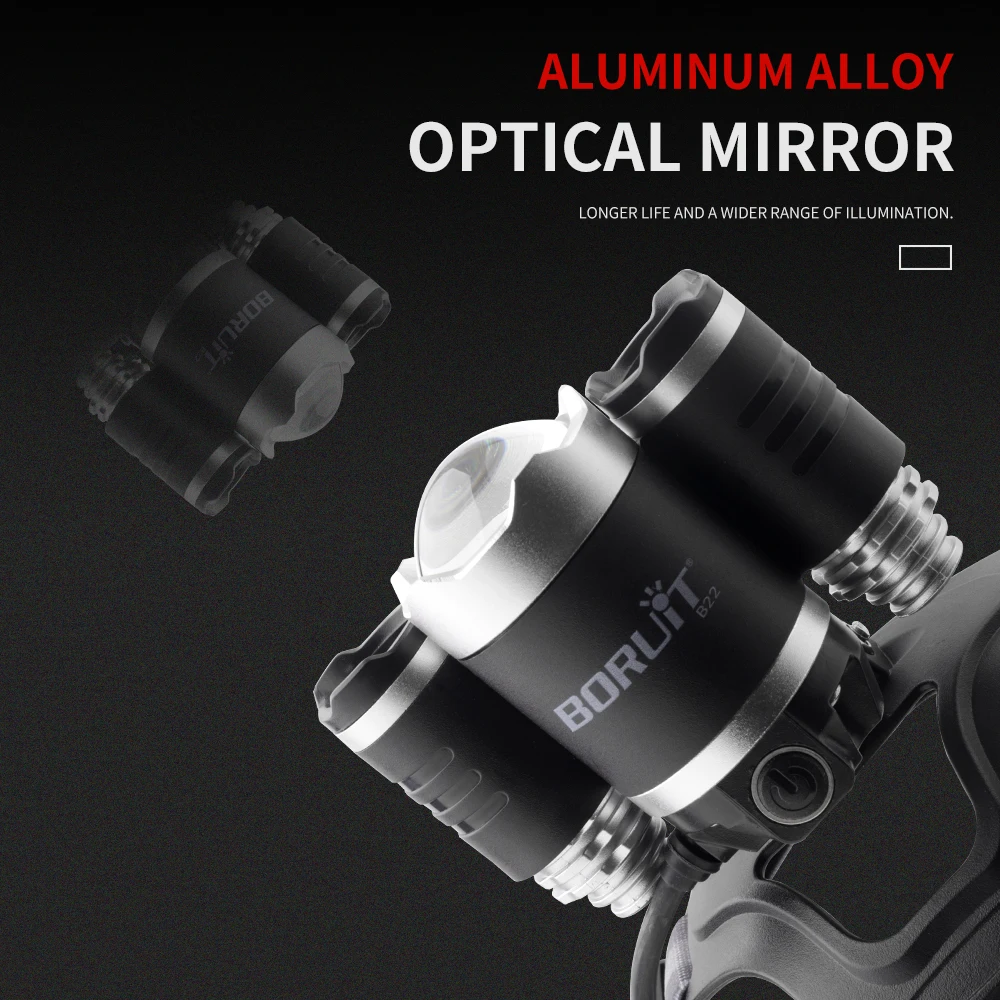 Налобный фонарь BORUiT B22 XM-L2 светодиодный светодиодной памятью, 4 режима, USB, масштабируемый, с аккумулятором 18650