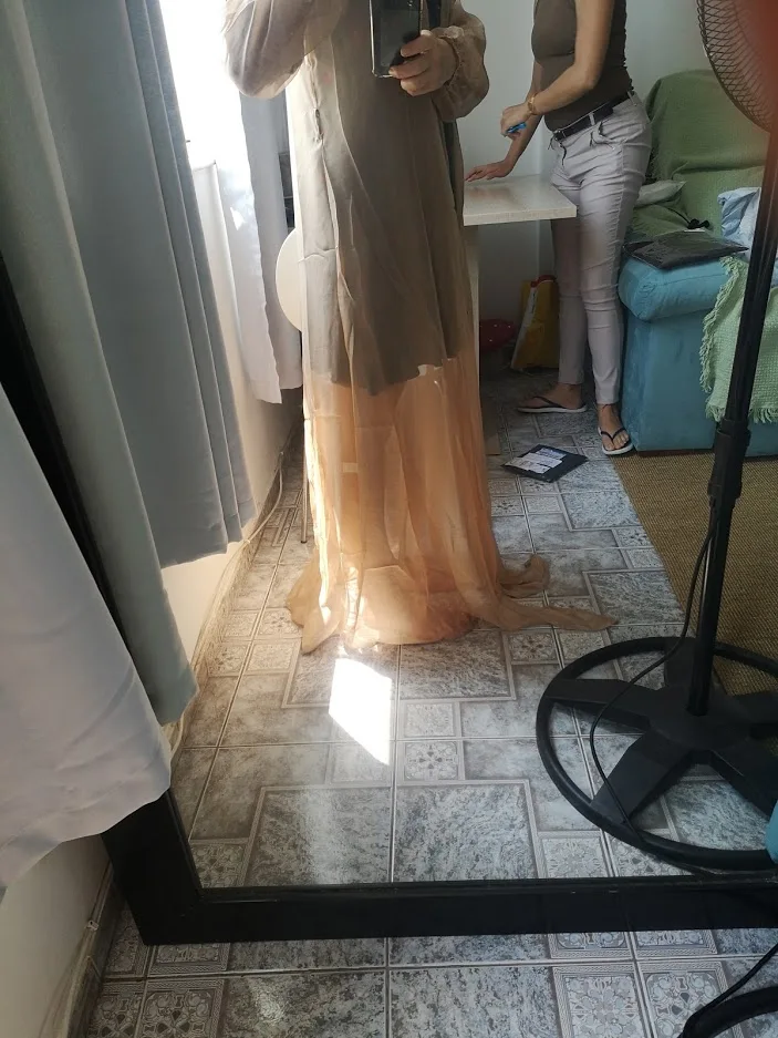 Хороших халатик, очень длинный, прозрачная ткань. Брала для пляжа и фоток с ветром