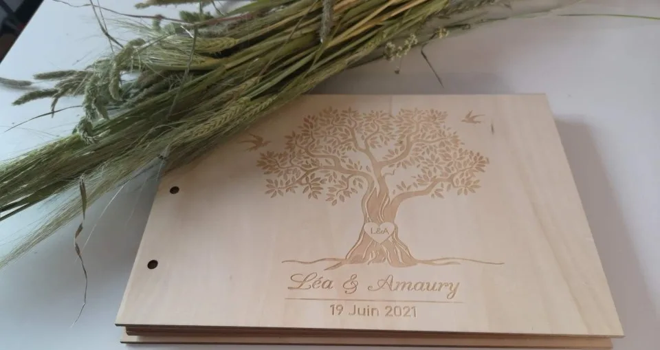 Деревянная Свадебная книга, свадебная книга с деревом, лазерная гра...
