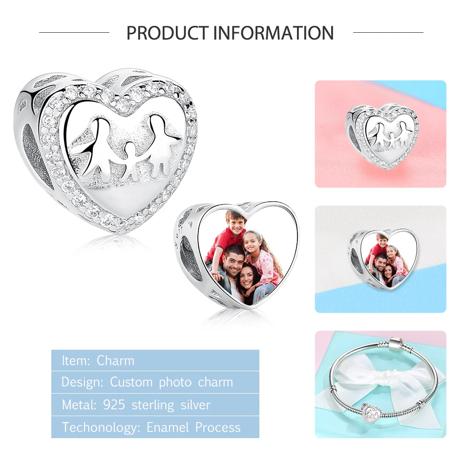 ELESHE Настоящее Стерлинговое Серебро 925 Сердце Любовь Семья Шарм пользовательские фото DIY ювелирные изделия браслет шарма оригинал для женщин