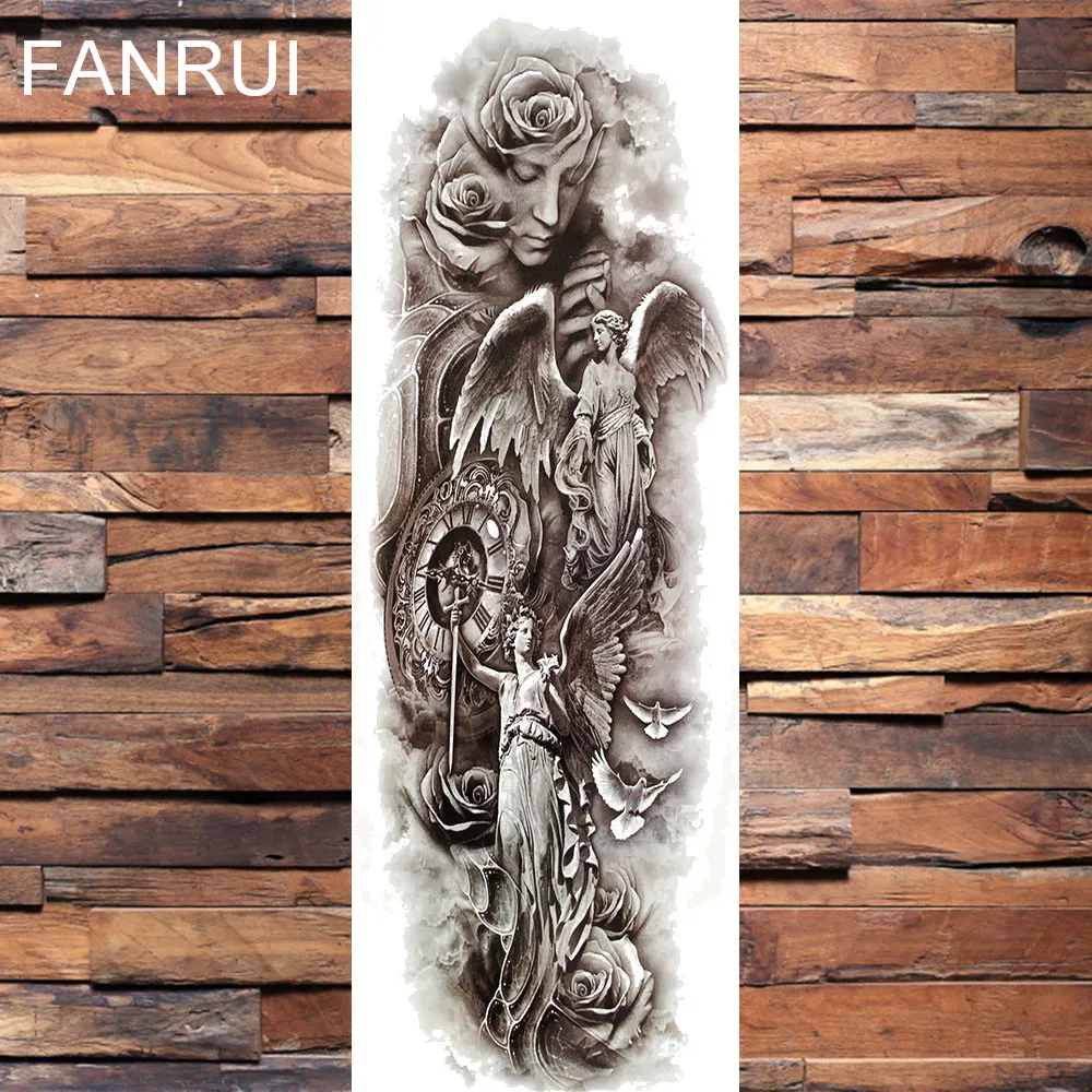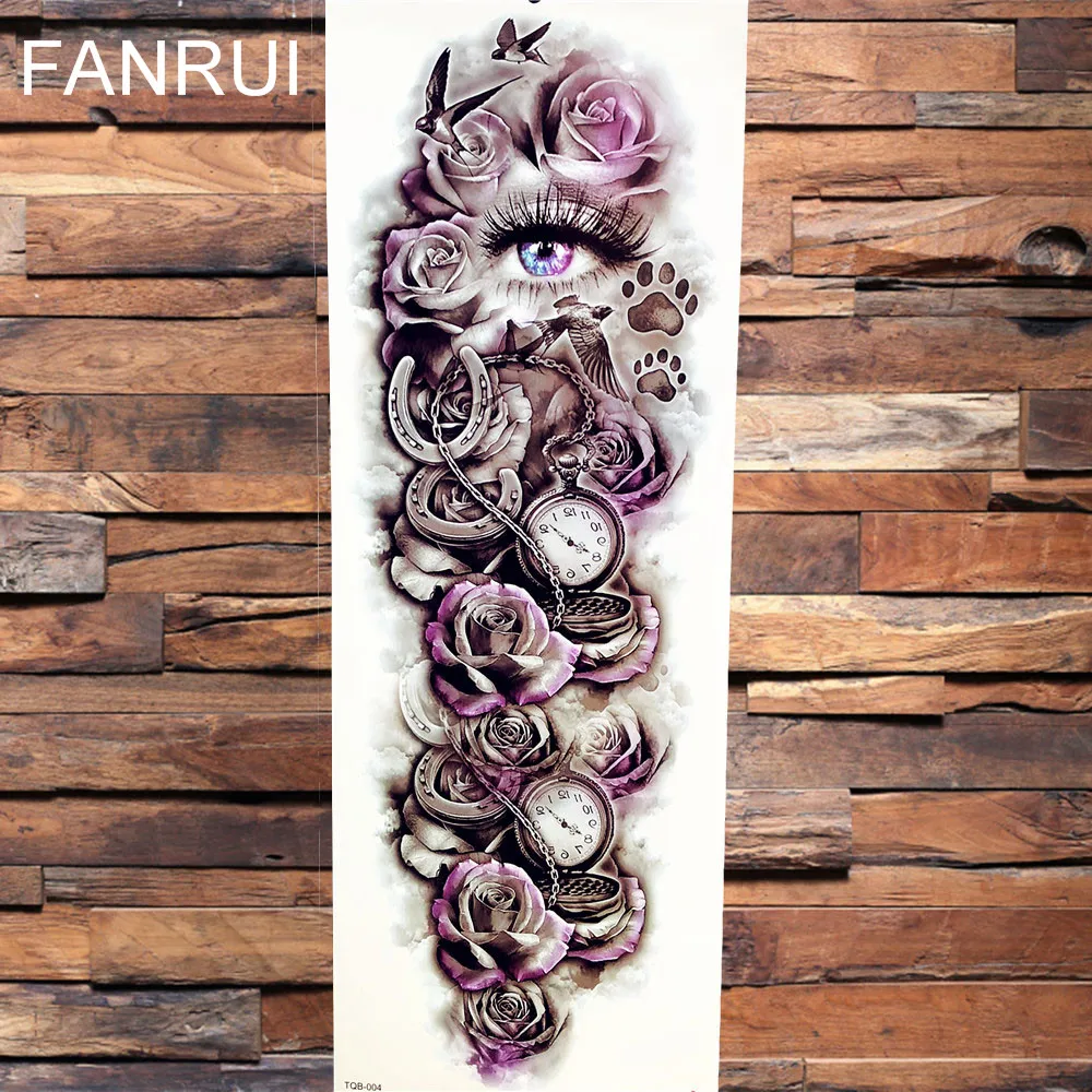 Временные тату-наклейки FANRUI на всю руку для мужчин и женщин, хна, 3D акварельные татуировки с розой, черепом, ангелом, телом, ногами, искусство, флэш-тату-бумага