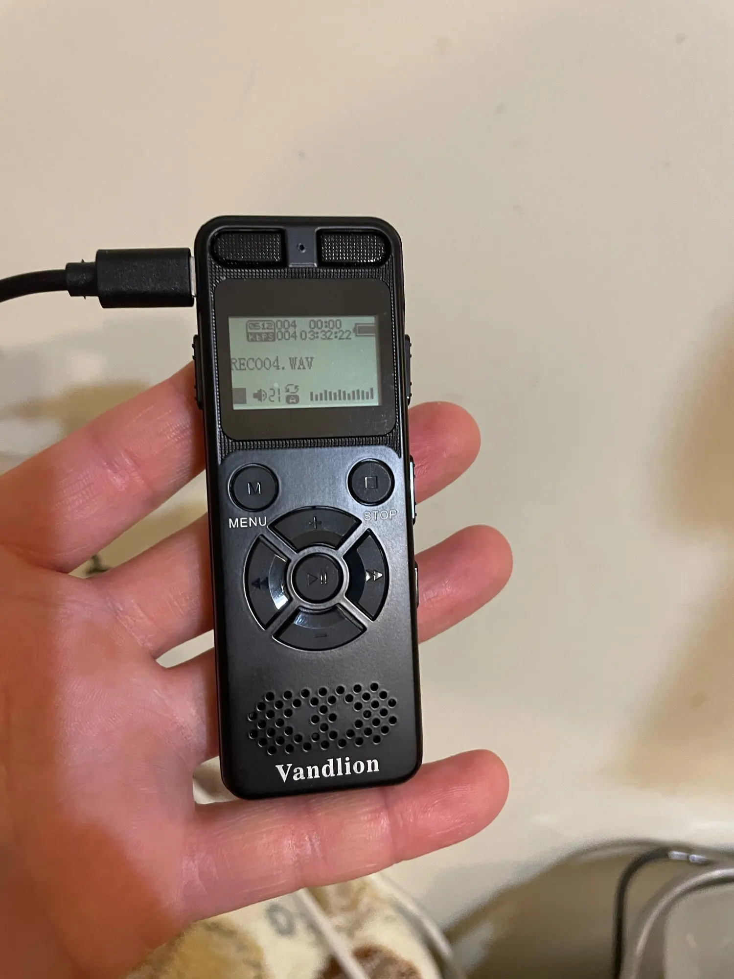 Очень хороший продукт! Как в описании. Регистратор маленький и сдержанный. Качество записи очень хорошее, и мы можем слушать их непосредственно через динамик или через наушники. Очень легко переносить файлы на компьютере, просто Подключите устройство к usb-порту, ничего для установки. Все было хорошо упаковано в коробку и прибыло в идеальном состоянии. Простота в использовании, инструкции проста (на английском языке).