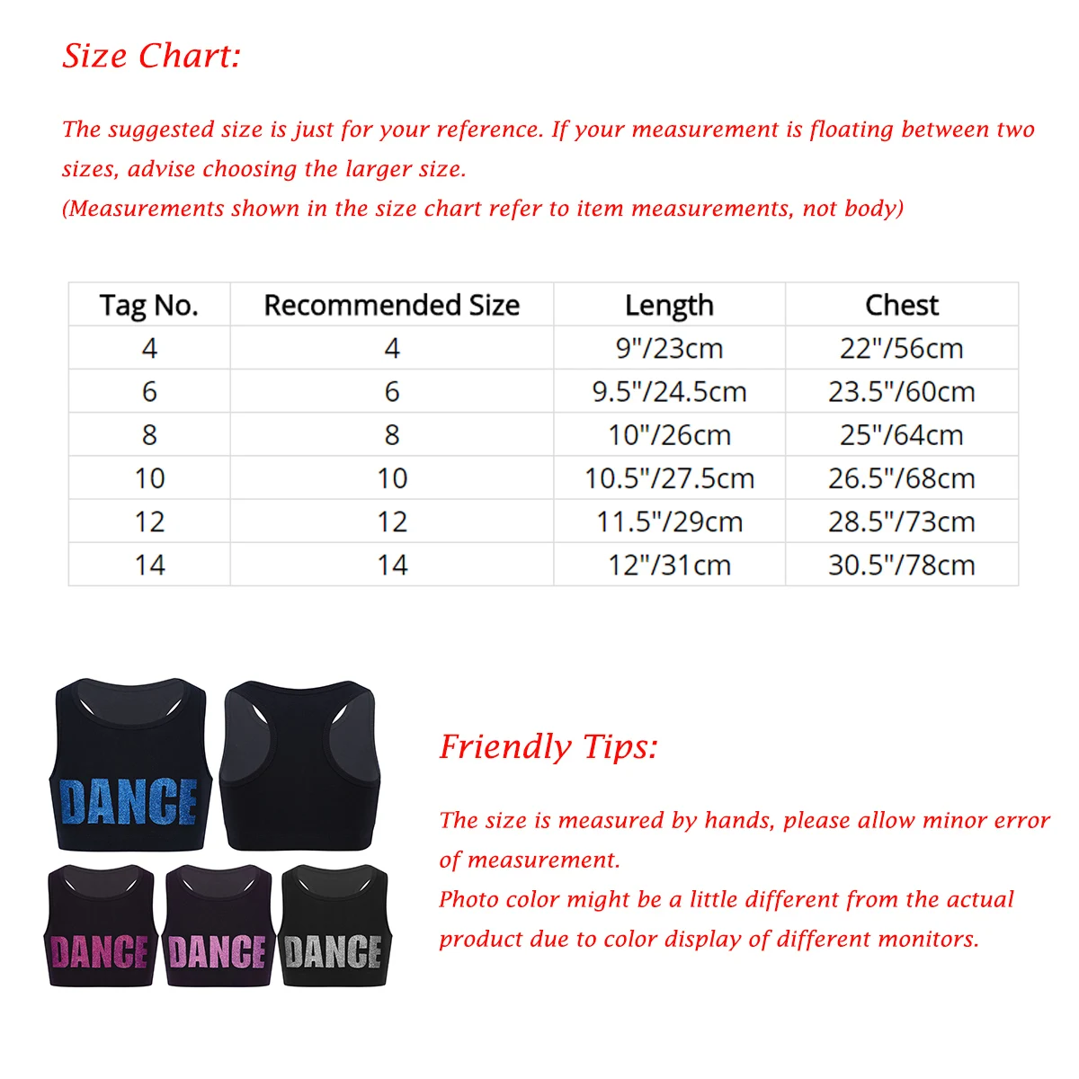 Детский гимнастический купальник для девочек, танцевальный балетный укороченный топ с открытой спиной и блестящими буквами, спортивный бюстгальтер, топы для выступлений на сцене