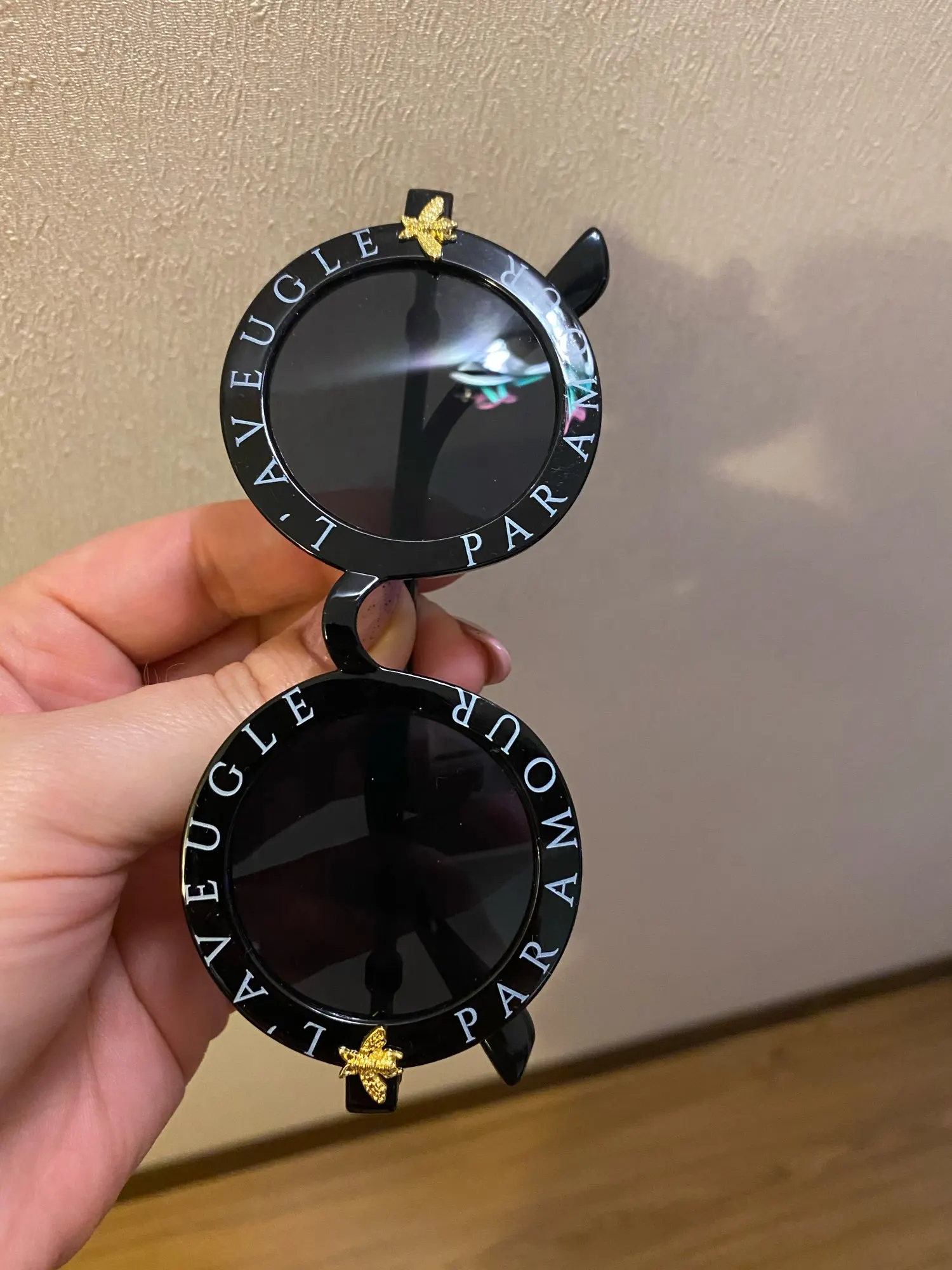 Детские дизайнерские солнцезащитные очки в круглой оправе, новинка 2019, детские очки с золотой Пчелой, детские летние очки UV400, милые очки для девочек