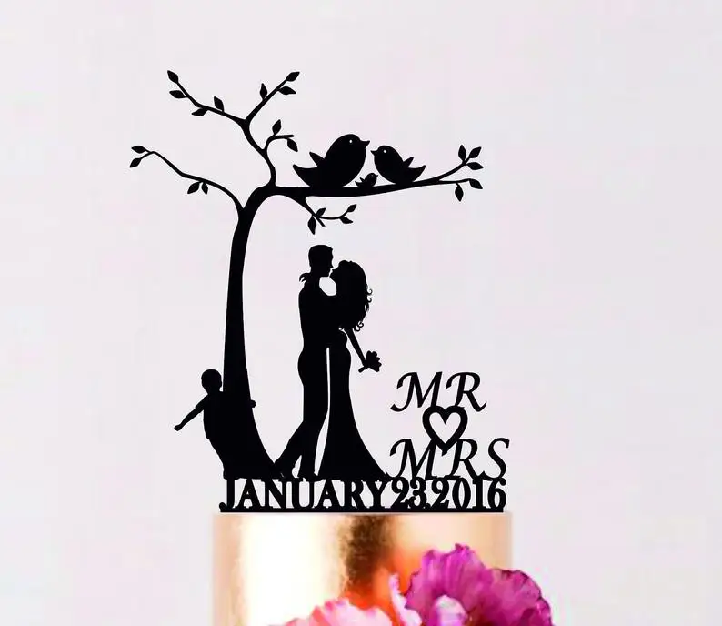 Индивидуальный Свадебный Топпер, для невесты и жениха с маленьким мальчиком, пары с ребенком под дерево, Свадебный Топпер для торта с ребенком, для семьи