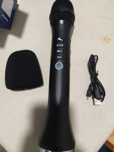 Товар соответсвует описанию. Микрофон замечательный, качество материалов превосходное, звук далеко не 20ватт, но для дома или квартиры вполне себе достойно. Продавец положил в подарок адаптер микроUSB и красный шнурок. Покупкой доволен, продавца и товар рекомендую.