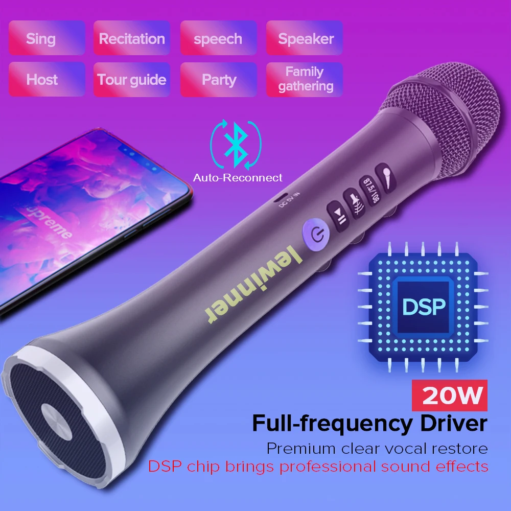 Lewinner L-698DSP, профессиональный Bluetooth-микрофон для караоке 20 Вт, портативный беспроводной мини-караоке для пения и музыки