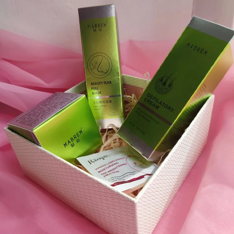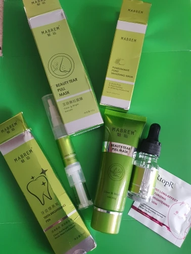 Заказала комплексом несколько средств по уходу: маска от чёрных точек,сыворотка для сужения пор, увлажняющий крем и сыворотку под глаза. Маска работает безупречно, эффект такой же как демонстрируют на фото. По консистенции напоминает густой клей, при нанесении проникает в поры. После того, как высохнет- снимается пленкой, вытягивая все из пор. Кожа сразу становиться более ровной и приятной на ощупь. В подарок продавец положил увлажняющую эмульсию в белой упаковке- хорошо увлажняет, полностью впитываясь и не оставляя ни пленки ни жирного следа. Сыворотка тоже впитывается моментально, оказывает разглаживающий эффект, придаёт ощущение бархотистости. Крем сильно увлажняет, заполняя мелкие морщинки наполняет их, даже показалось, что на пальцах «разгладил линии отпечатков». Нравится, что нет жирного блеска, утяжеления, чувства маски. Легкая текстура, полностью впитывается в течении нескольких минут, наполняя кожу изнутри, придавая чувство свежести и увлажнения. Все коробочки в целлофане.