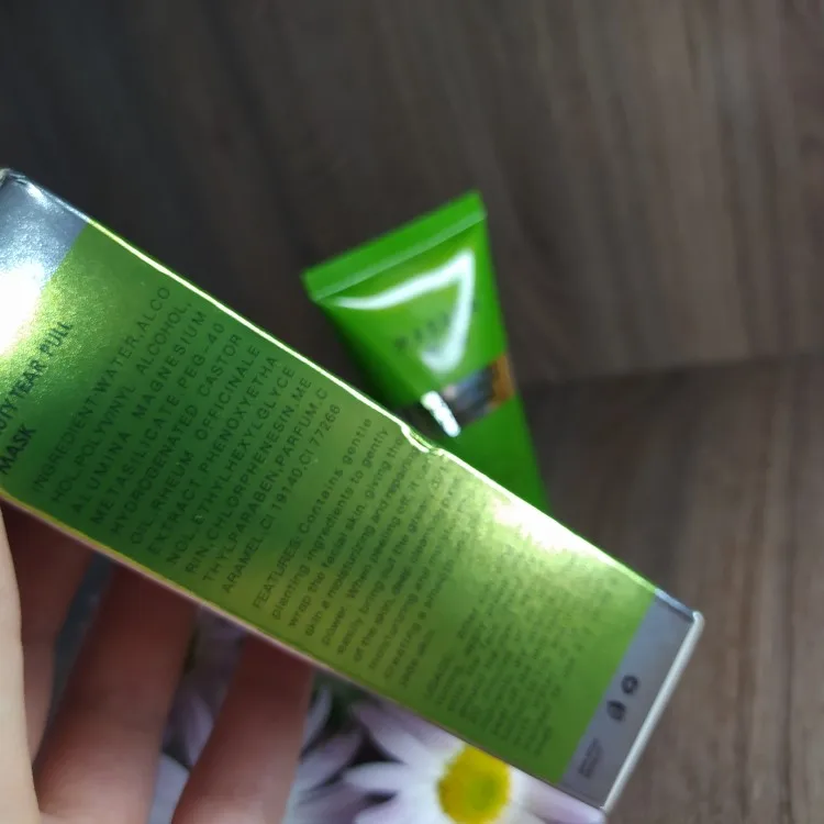 Маска предназначена для очищения кожи, удаления чёрных точек. Освежает цвет лица, контролирует уровень жирности. Средство светло-коричневого цвета. Легко распределяется по лицу. Запах достаточно резкий, но приятный. Применение: нанести на очищенную кожу и подождать 20 минут, пока высохнет. Потом снять плёнку и умыться. Маска упакована в пластиковую тубу и помещена в фирменную коробку, на которой указана информация о продукте на английском и китайском языках. Вес: 40 г. Срок годности: 3 года.