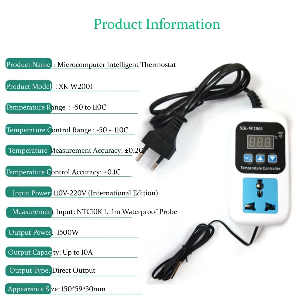 Электронный регулятор температуры, термостат, полностью автоматический, регулируемый, с цифровым дисплеем, VKS-W2001