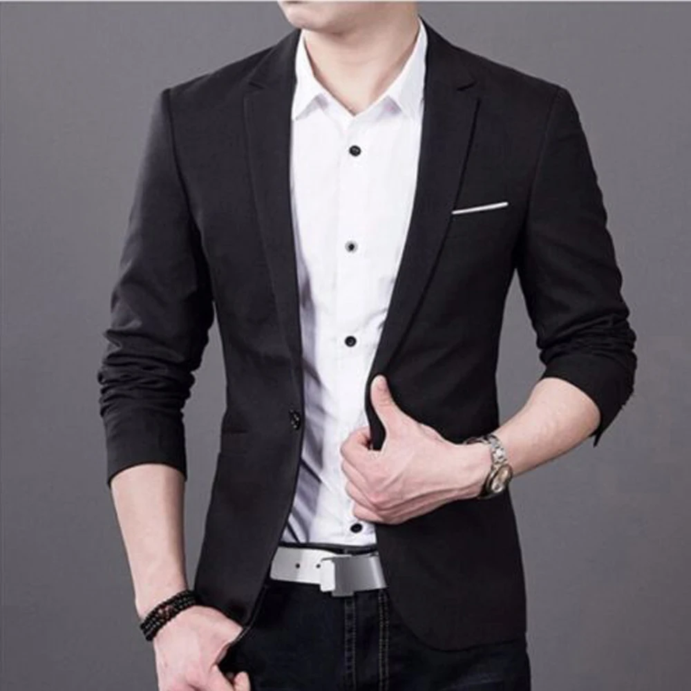 Блейзер Мужской в Корейском стиле, приталенный хлопковый пиджак, де...