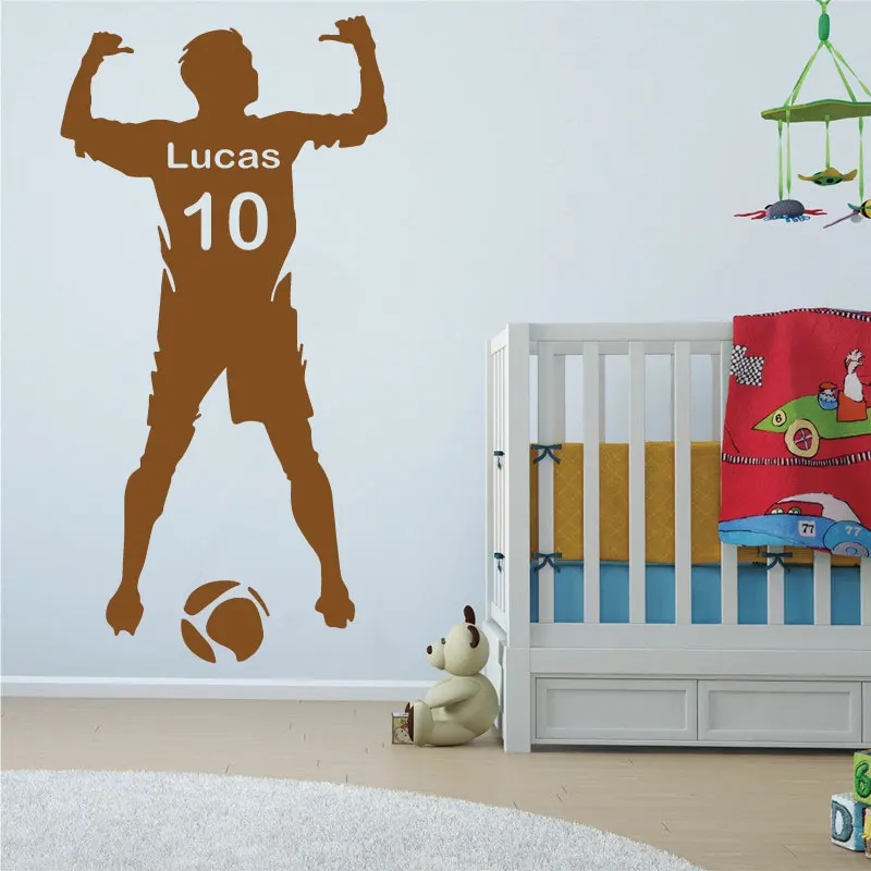 Футбол Персонализированные Имя и номер виниловая наклейка на стену плакат настенный художественный Декор-дети и мальчик спальня футбол настенные наклейки декорации 3yd4