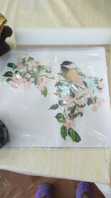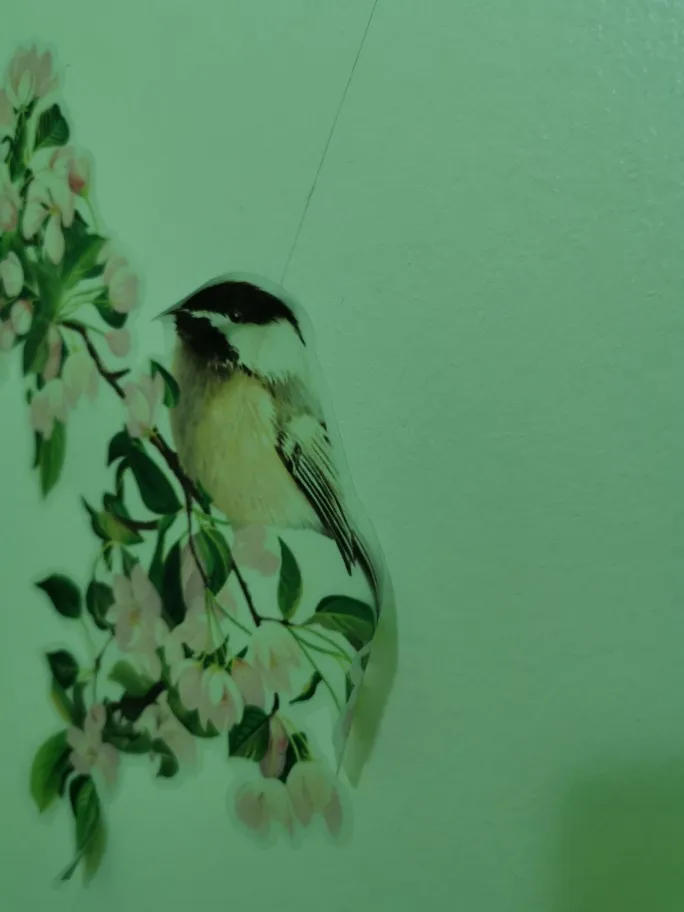 Наклейки пришли за месяц. Наклейка с синичкой не выглядит объемной, а с розой объемная. Плюс в подарок положили маленькую наклейку. Спасибо.
