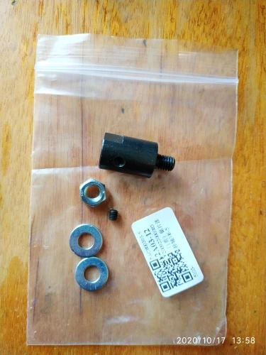 Получил муфту, всё соответствует размерам заказа. Упакована в тонкий пакет (муфта, 2 гайки шайба и стопорный винтик под мелкий шестигранник) Спасибо за товар