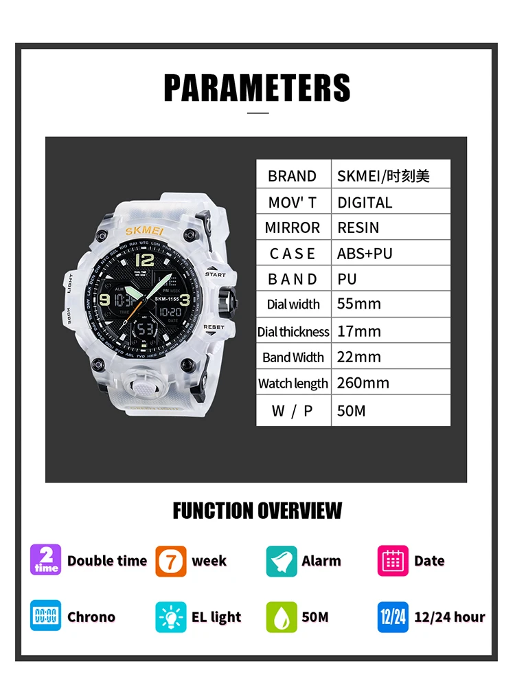 2021 SKMEI новые модные мужские спортивные часы мужские кварцевые аналоговые светодиодные цифровые часы мужские военные водонепроницаемые часы Relogio Masculino 1155B