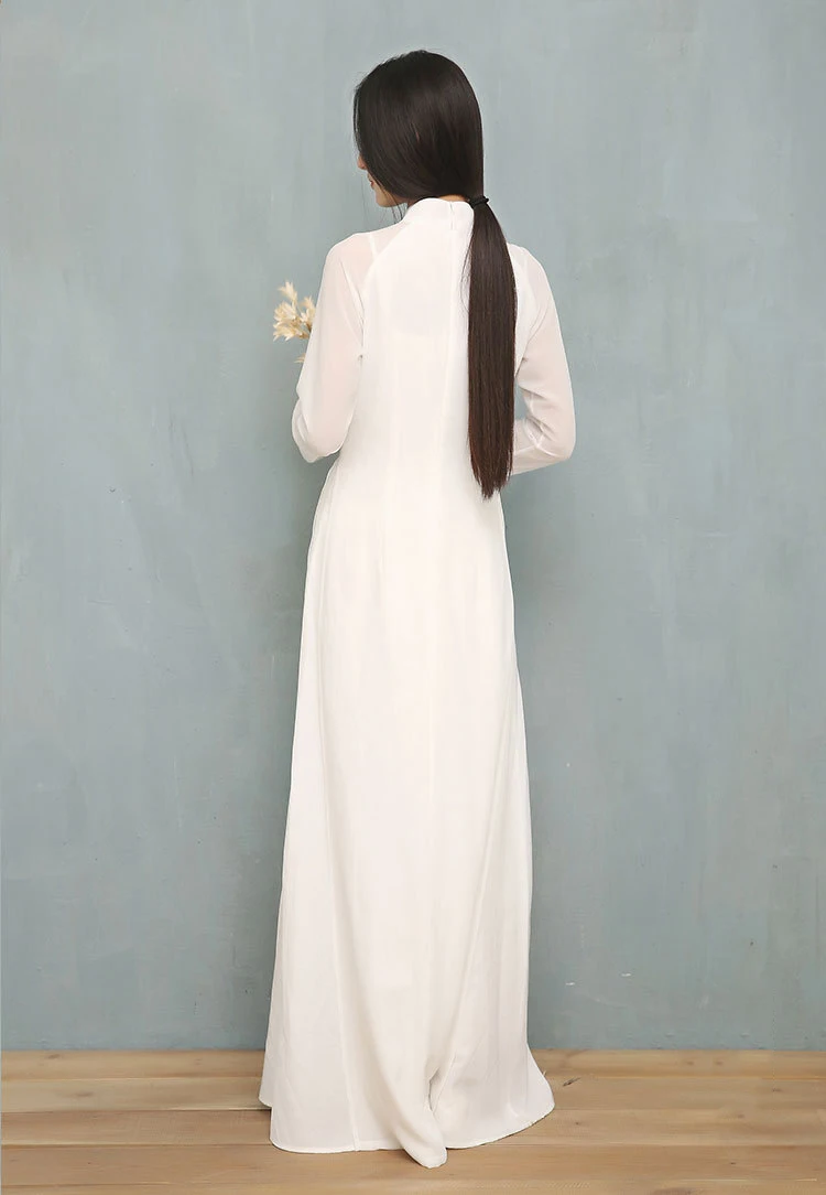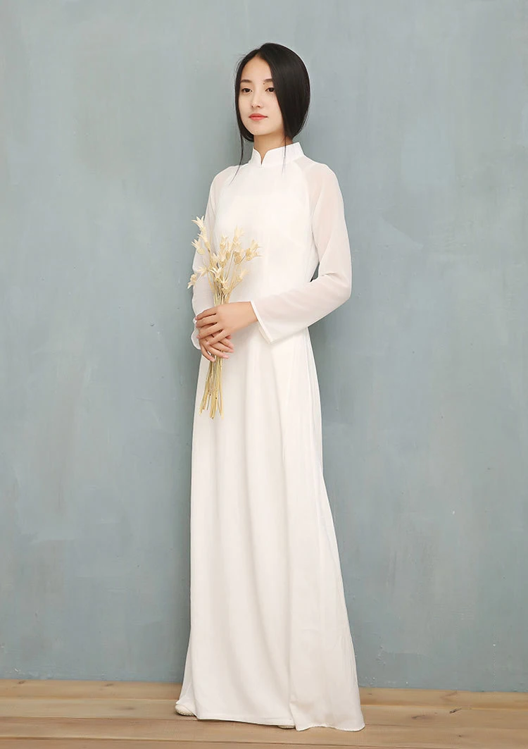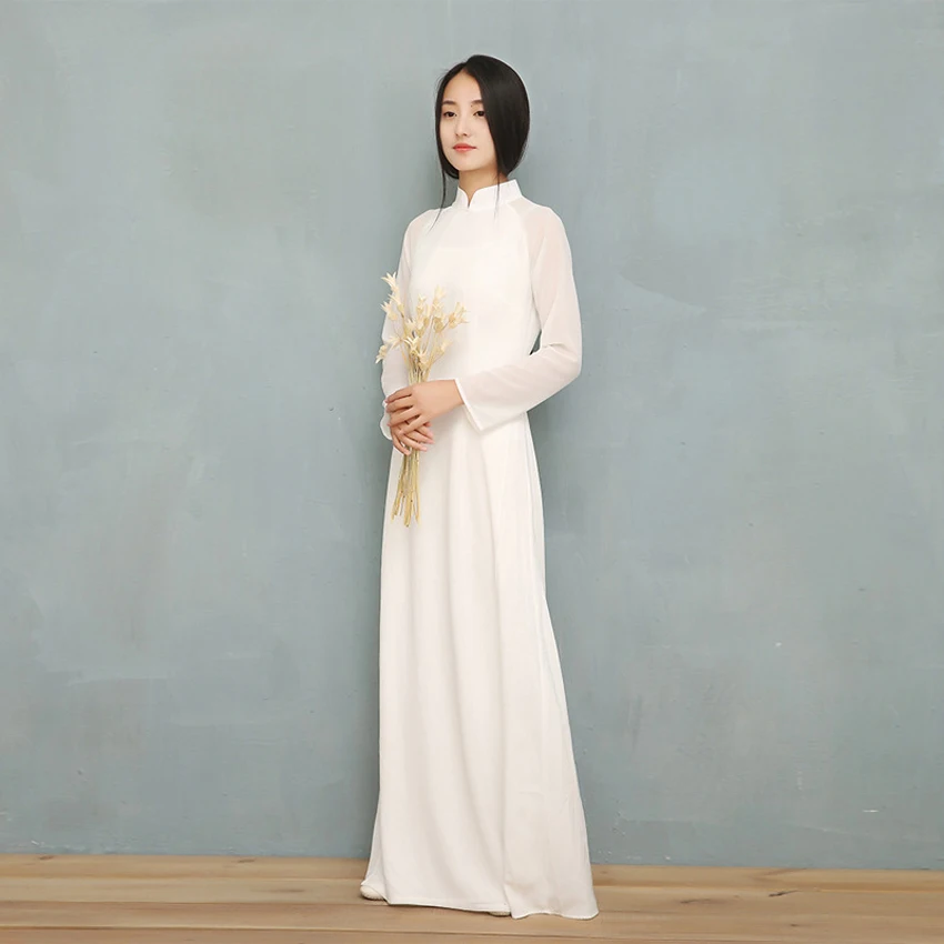 2022 Вьетнам Ao Dai, белое однотонное шифоновое Прозрачное платье для женщин, китайское платье-ципамы с длинным рукавом, женское восточное платье