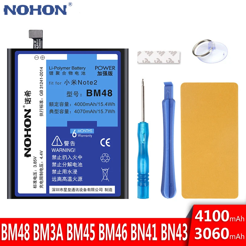 Аккумулятор NOHON для Xiaomi Mi Note Pro 2, 3, BM3A, BM48, BM34, BM21