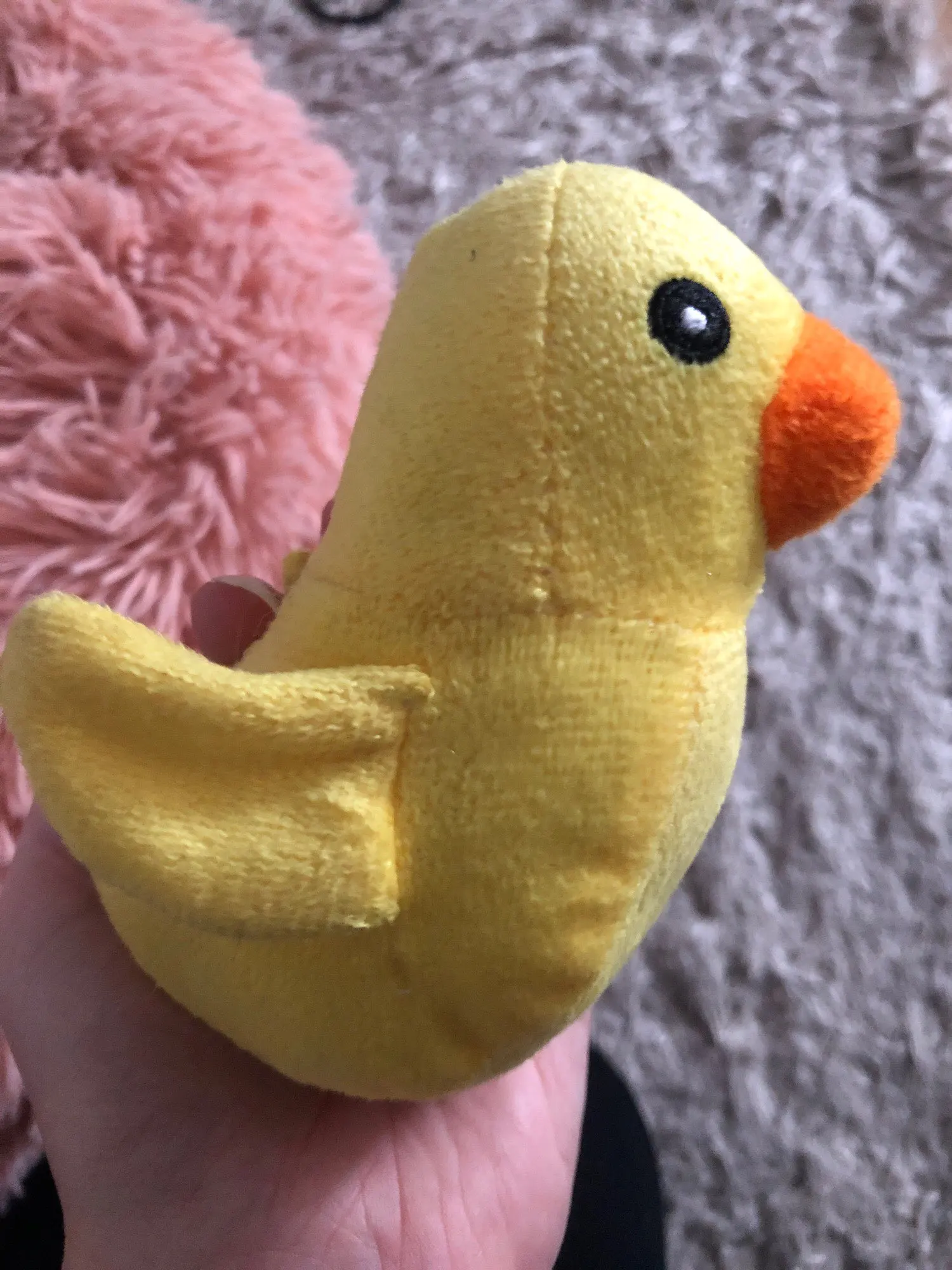 Прикольная миниатюрная уточка. Внутри пищалка. Через какое то малое количество времени собака порвала ее - зашили - играем вновь. Рекомендую!
