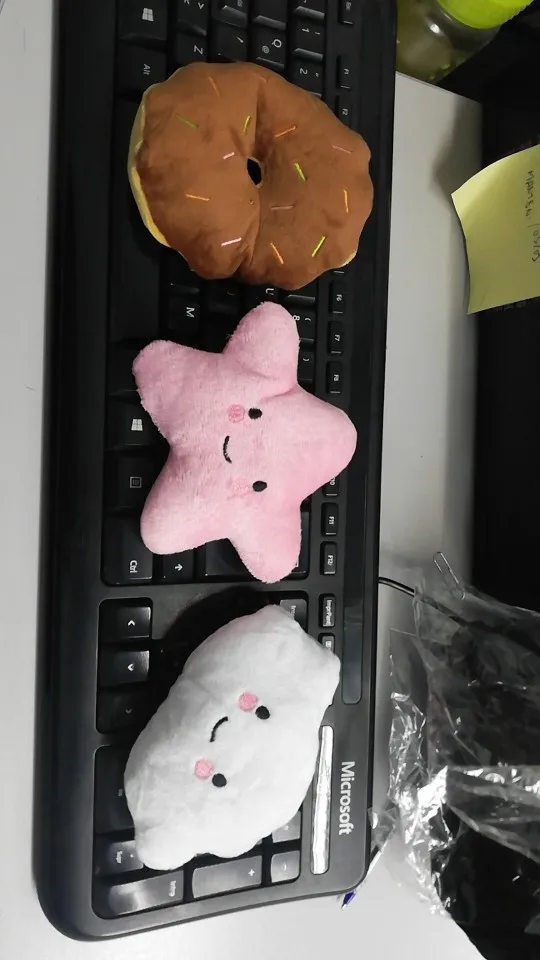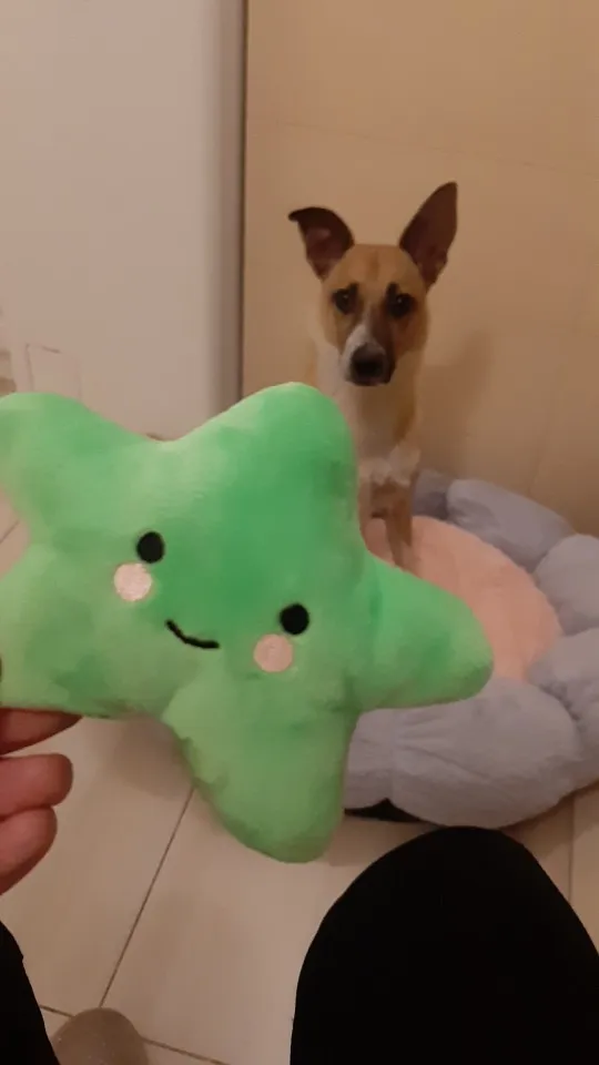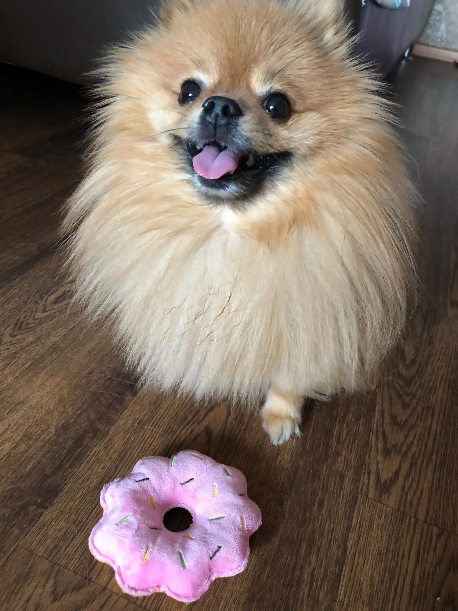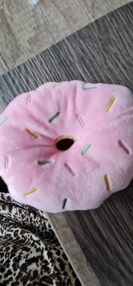 Пришёл это уже хорошо но пончик весь кривой и пищалка работает через раз расходятся швы Джек Расселу на один зуб очень жаль что игрушка пришла не такая как на картинке( Ну а так она приятная на ощупь мягкая прикольная)