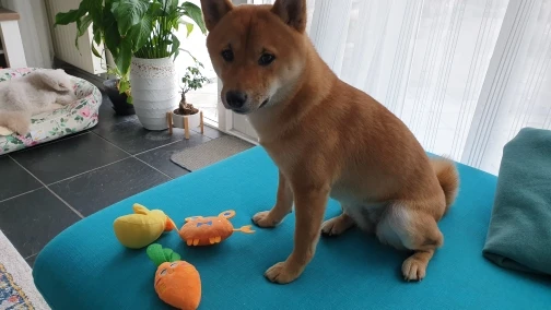 Собаке понравилась. Пищалка маленькая (если зубы кусачие- то пищалке конец)