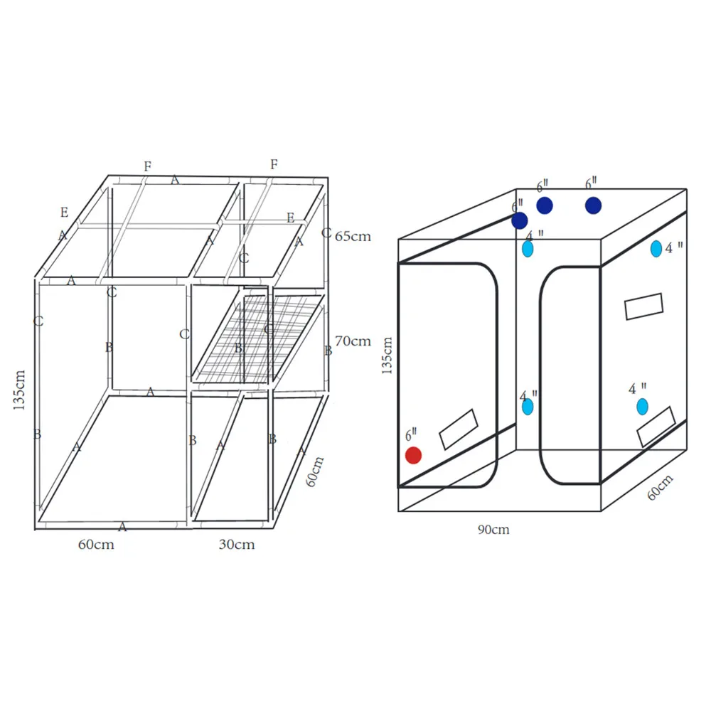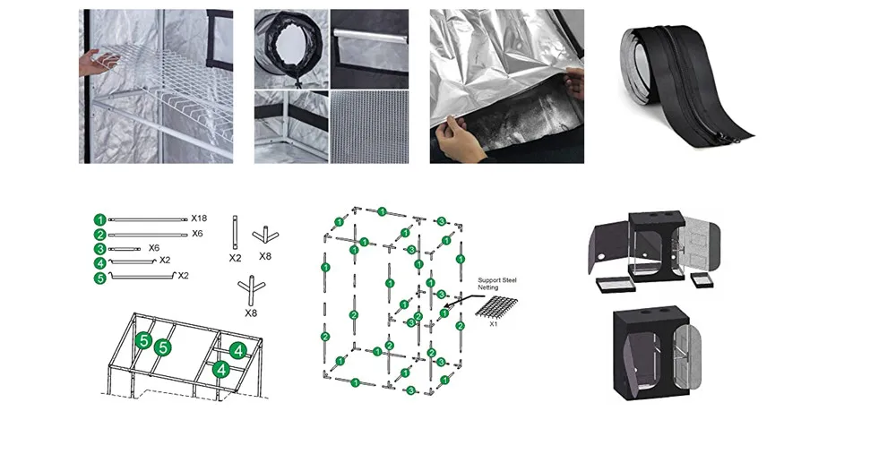 •Прочный-Рама и все угловые опоры изготовлены из высококачественной трубчатой стали с порошковым покрытием; Не трескаются, как пластиковые трубки/фитинги, не разрушаются и не провисают, как алюминий. Съемные верхние направляющие обеспечивают верхнюю поддержку освещения, контроля запаха и вентиляции.