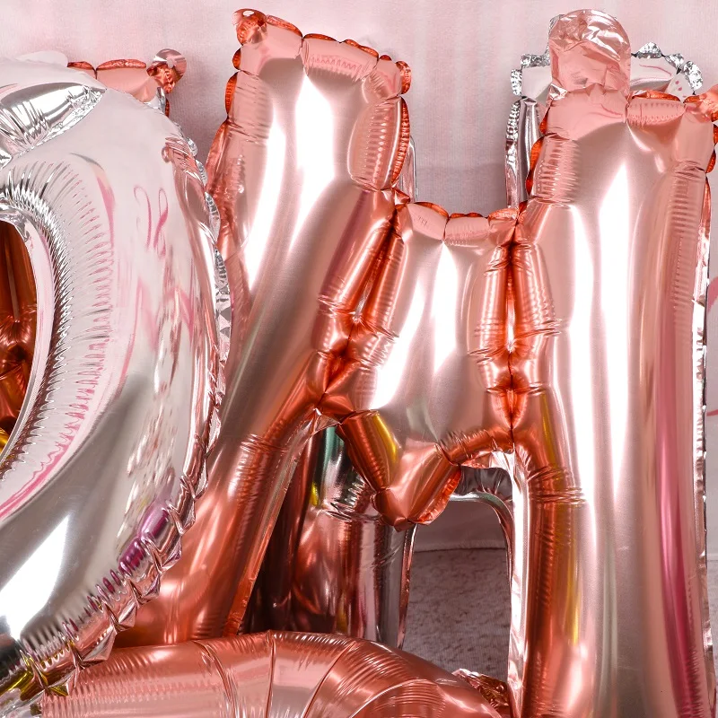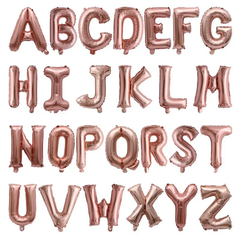 16, 32 дюйма из розового золота с принтом цифр и букв; С воздушными шарами День рождения Свадебный декор Свадебные Алфавит шар Юбилей нарядное Globos