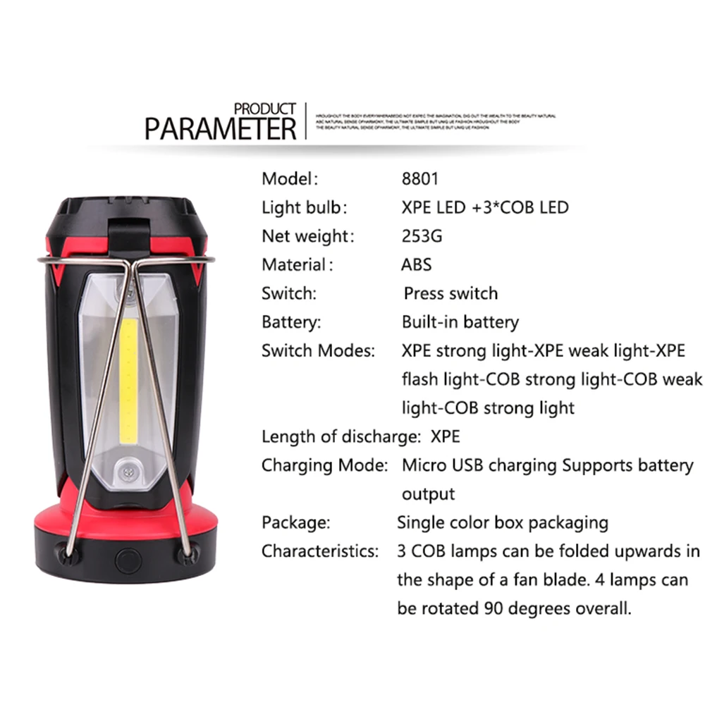 Прямая поставка COB светильник светодиодный фонарик для кемпинга рабочий аварийный Многофункциональный USB Перезаряжаемый переносной фонарь фонарик для кемпинга