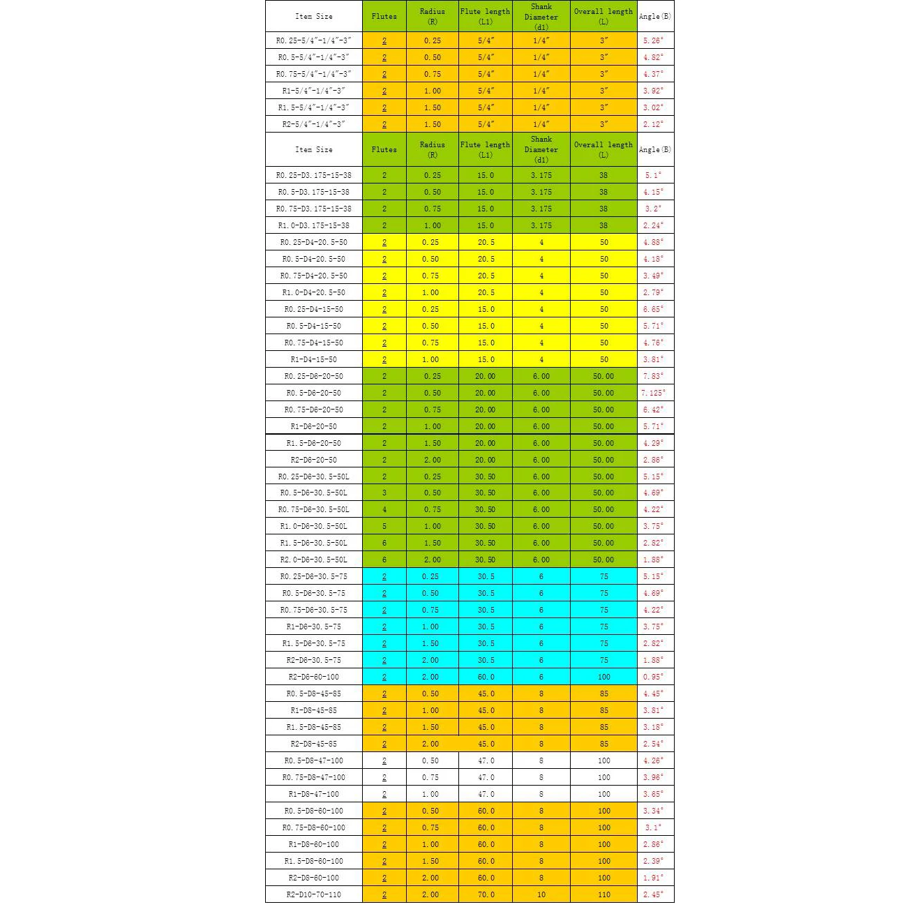 ·Радиус: 0,25/0,5/0,75/1 мм;