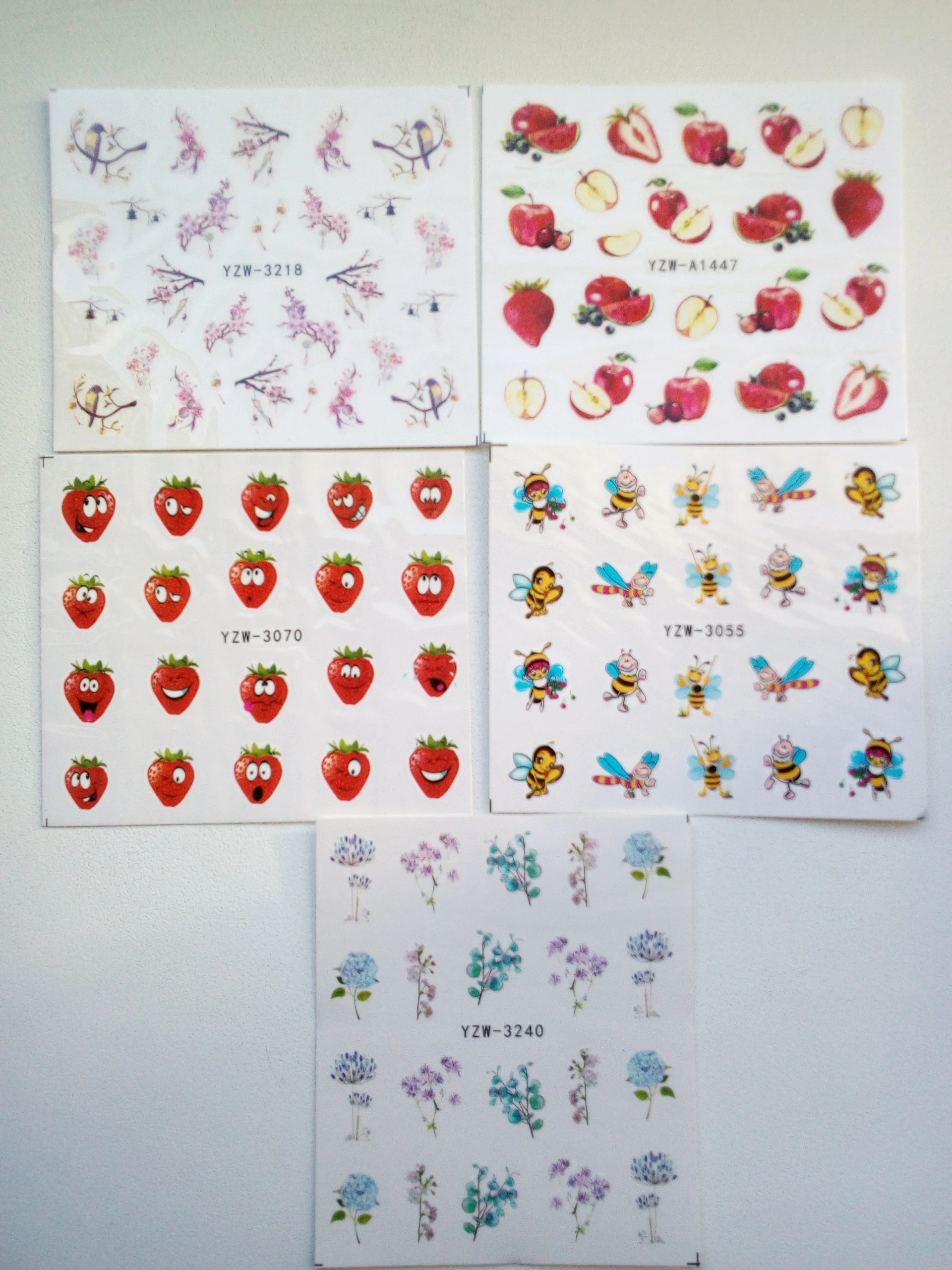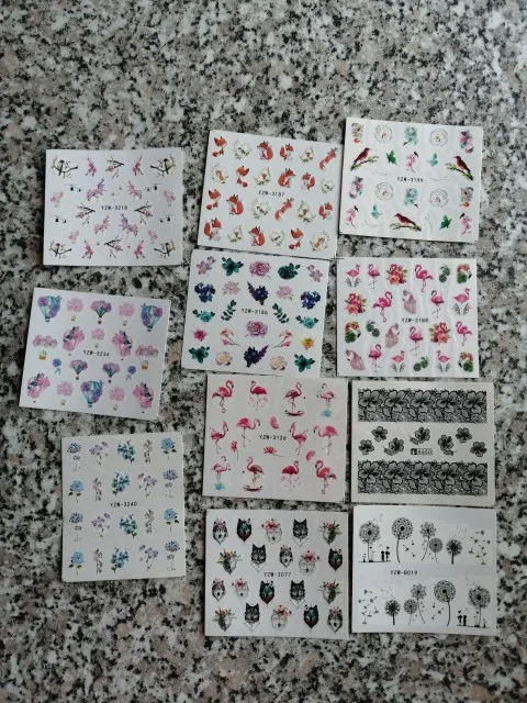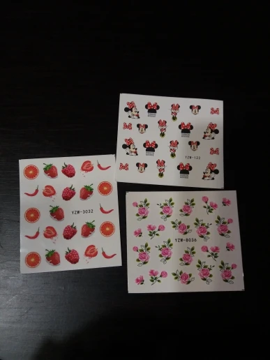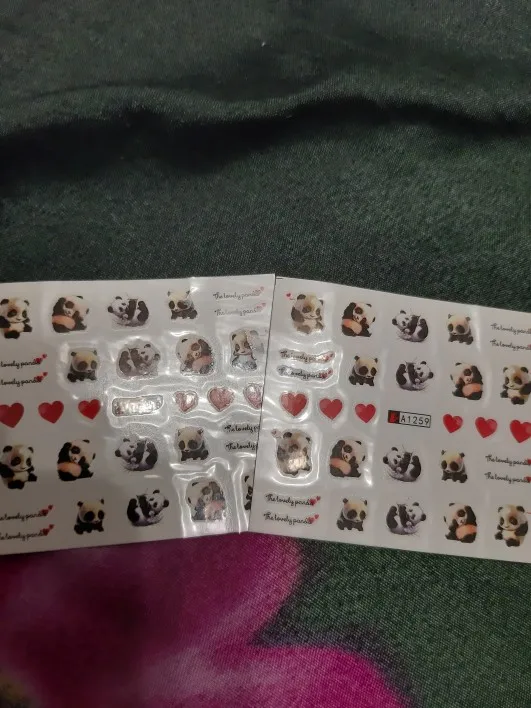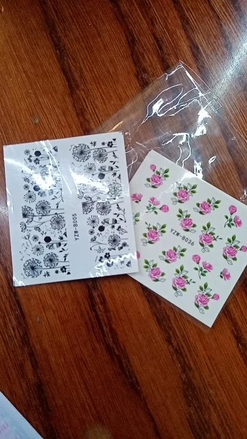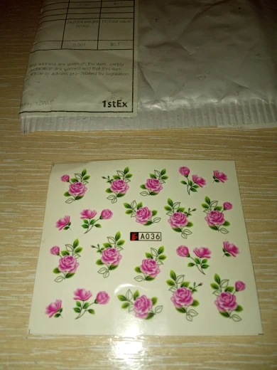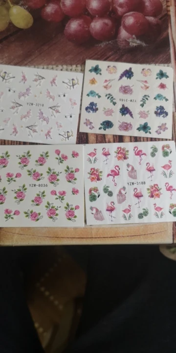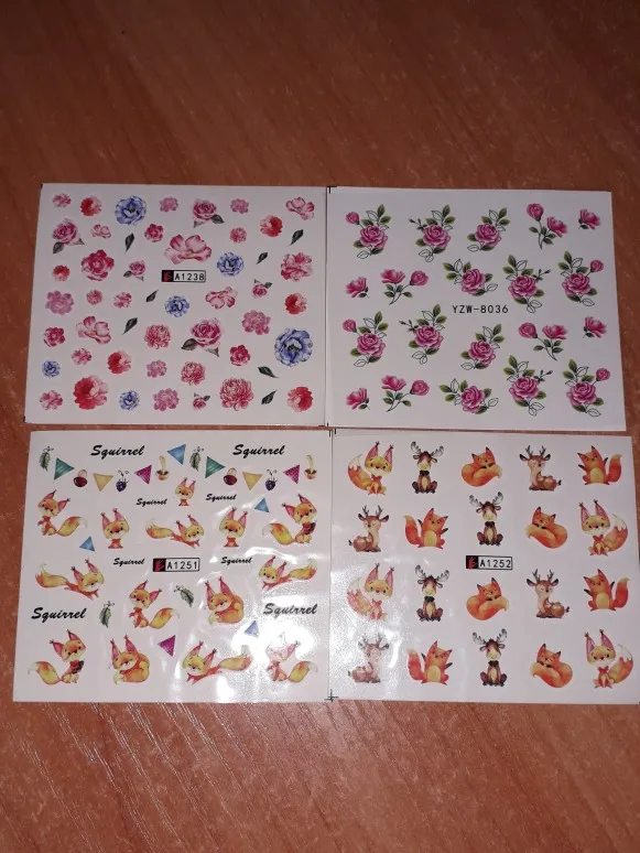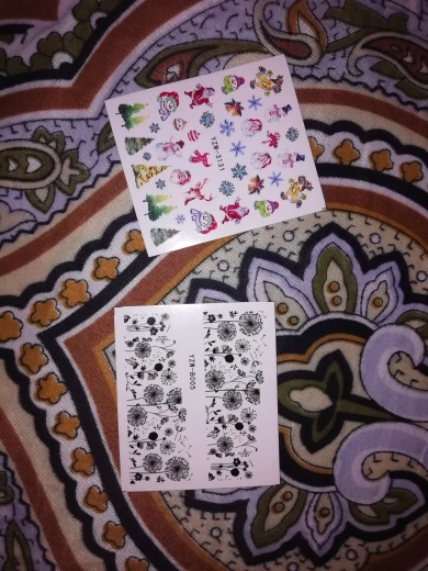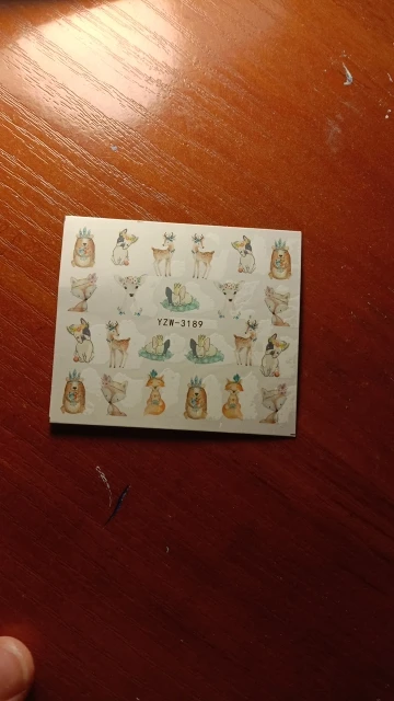 Наклейки пришли очень быстро по сравнению с ранними заказами с али в общем, заказывала 11.11 забрала с почты 5.12,все как заказывала, хорошо что не перепутали, только заказала на пробу, если кто занимается ногтями берите больше там всего 19 наклеек
