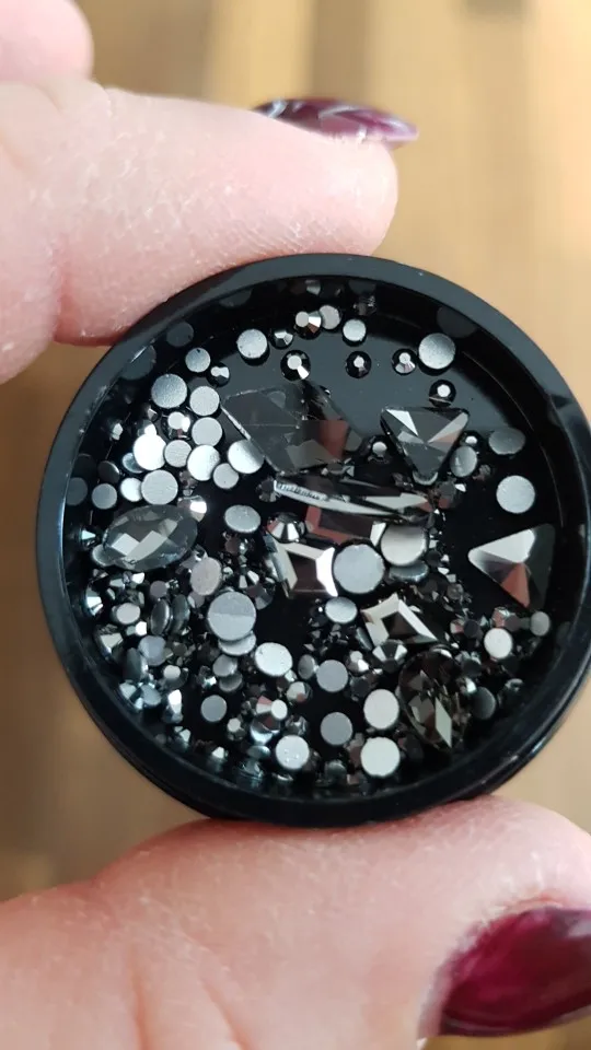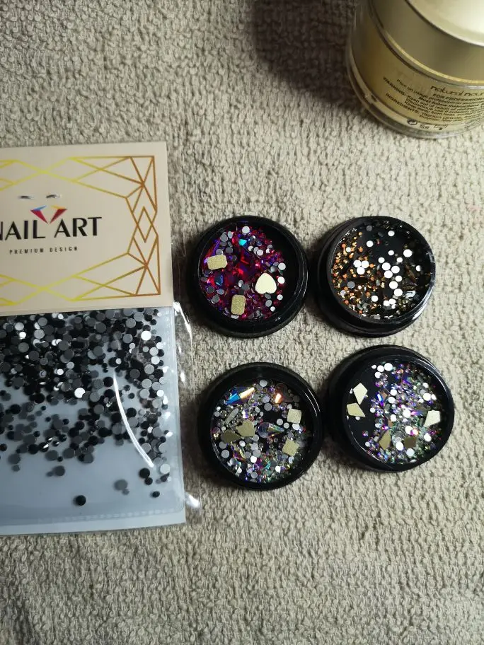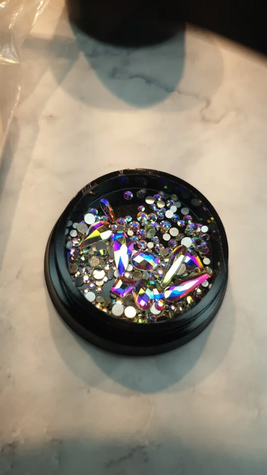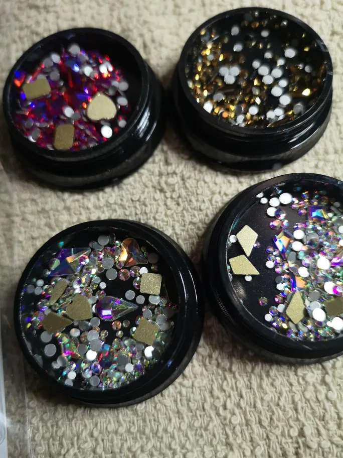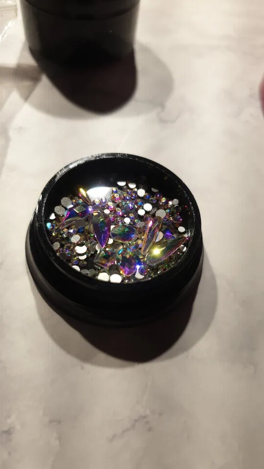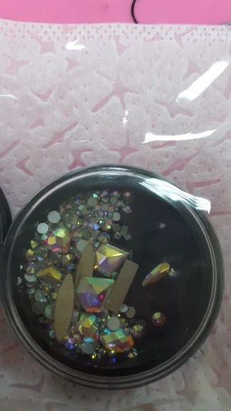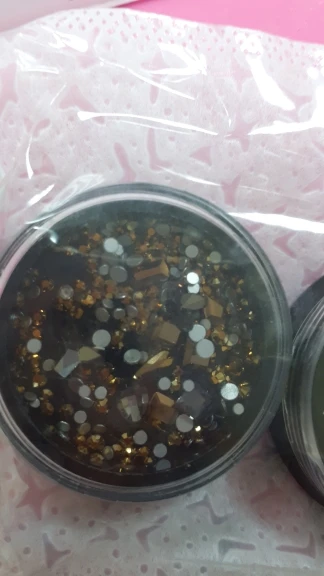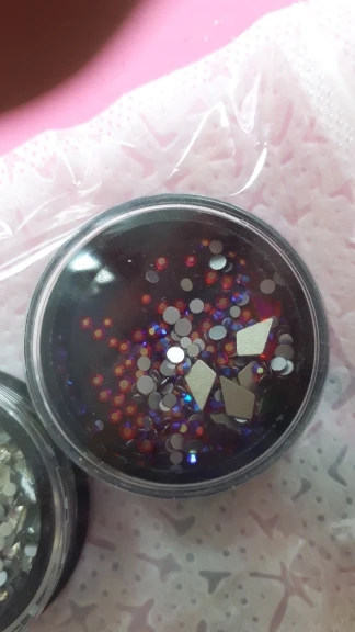 В баночке страз мало, не как на картинке. Блестят красиво. Доставка месяц. В общем покупкой довольна, но если бы знала количество соаз, взяла бы по 2 упаковки сразу.