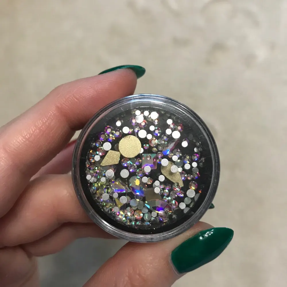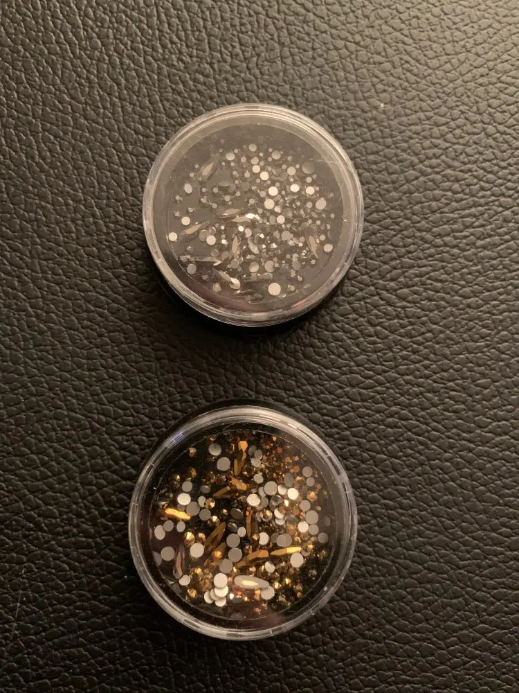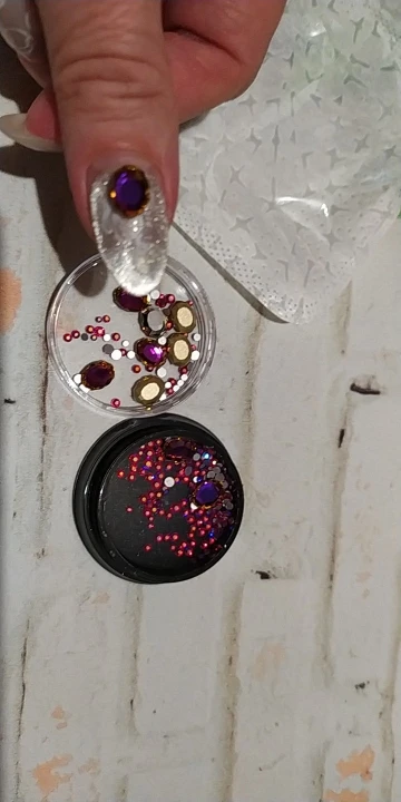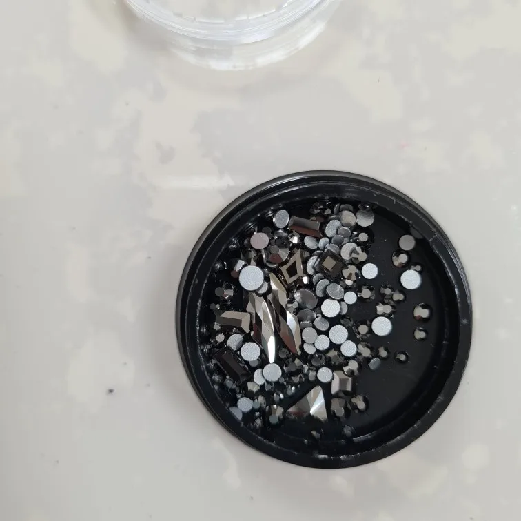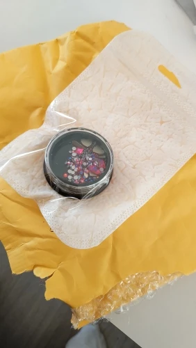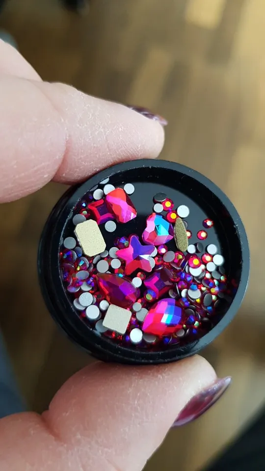 В баночке страз мало, не как на картинке. Блестят красиво. Доставка месяц. В общем покупкой довольна, но если бы знала количество соаз, взяла бы по 2 упаковки сразу.