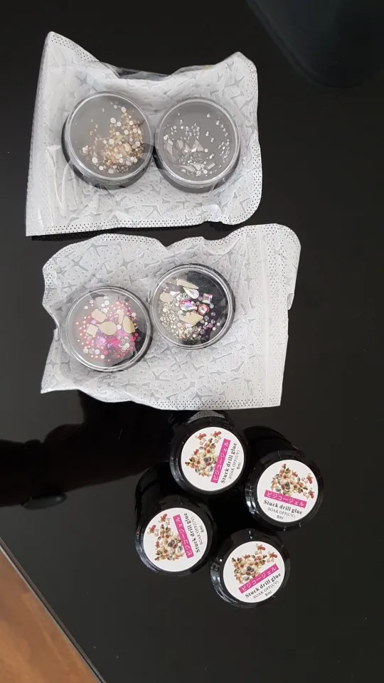 Я не заметила, что заказала вместе с клеем.. ну им я пользоваться не буду.. сами стразы красивые, но очень мало
