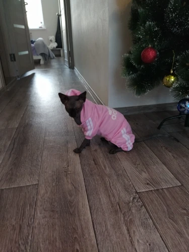 товар пришел быстро,но доверилась отзывам и подвели отзывы.Брала XXLна годовалого сфинкса.Ну очень велик.А так нормально,костюмчик тепленький.С продавцом общаться не было нужды.