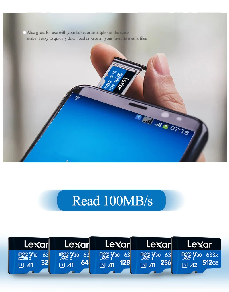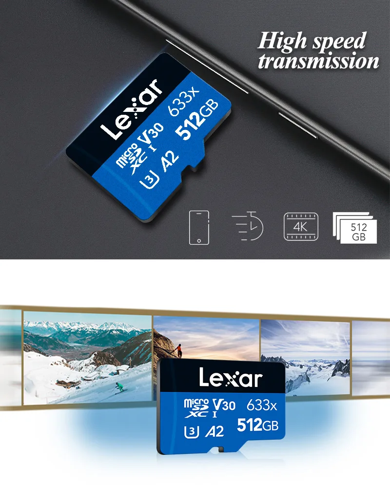 Карта памяти Micro SD Lexar 633x до 95, МБс., 512 ГБ, 256 ГБ, 64 ГБ, 32 ГБ