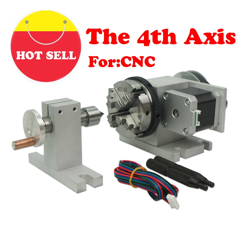 4-х кулачковый патрон 65 мм, ротационный 4-осевой и задний корпус с 42 шаговым двигателем для маршрутизатора с ЧПУ 3040 6040